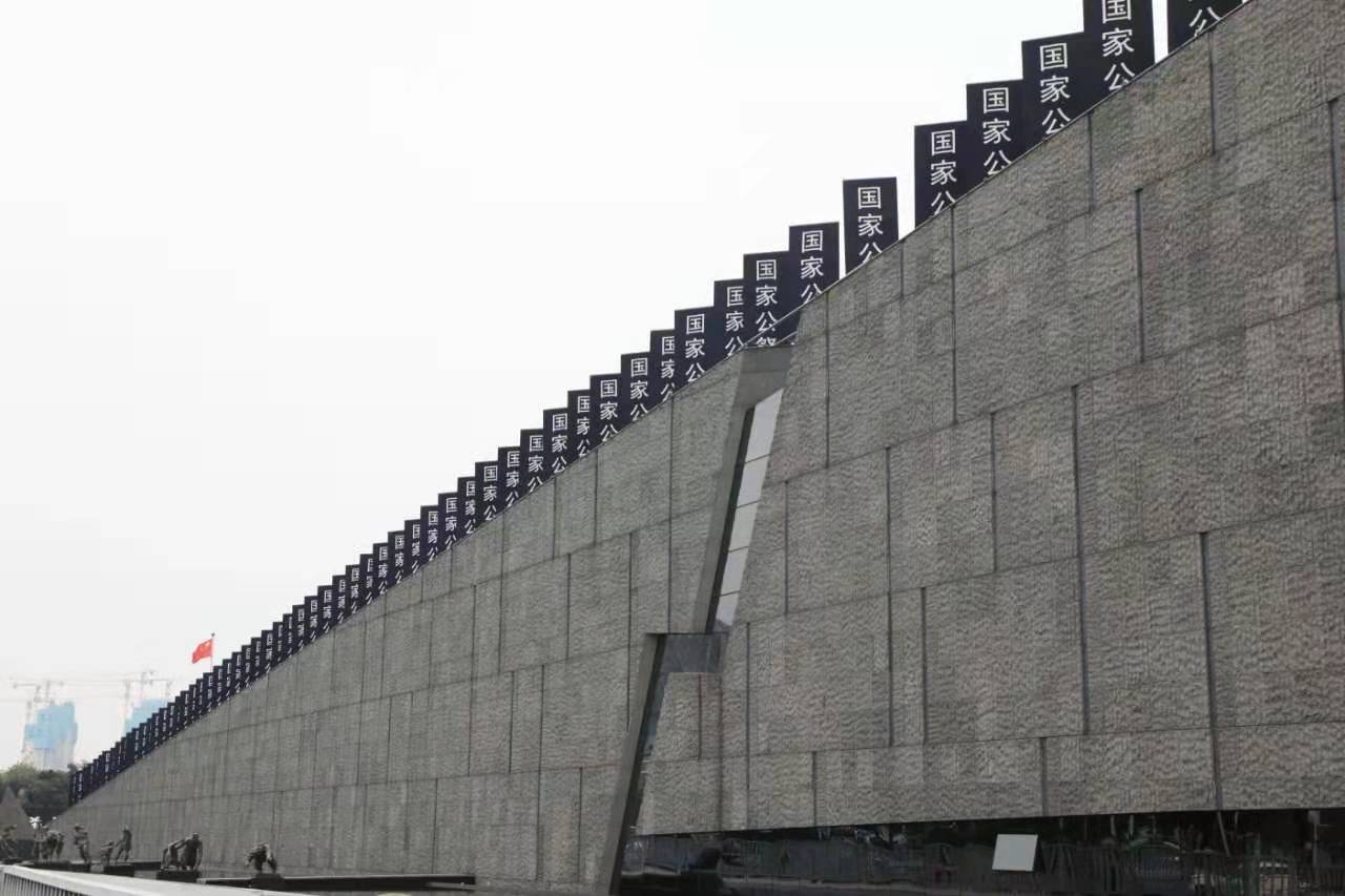 国家公祭日前夕,侵华日军南京大屠杀遇难同胞纪念馆国家公祭牌全部安装完毕。黑底白字,庄严肃穆。