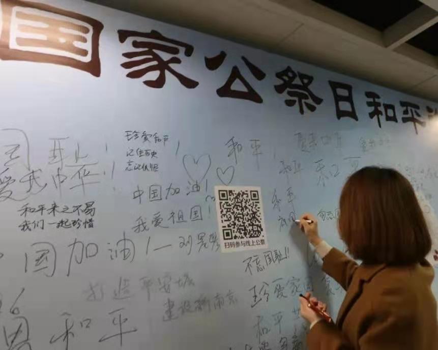 南京地铁多个站点设置了和平许愿墙,社会各界人士自发前往许愿墙签名留言,写下祈愿和平的心声。