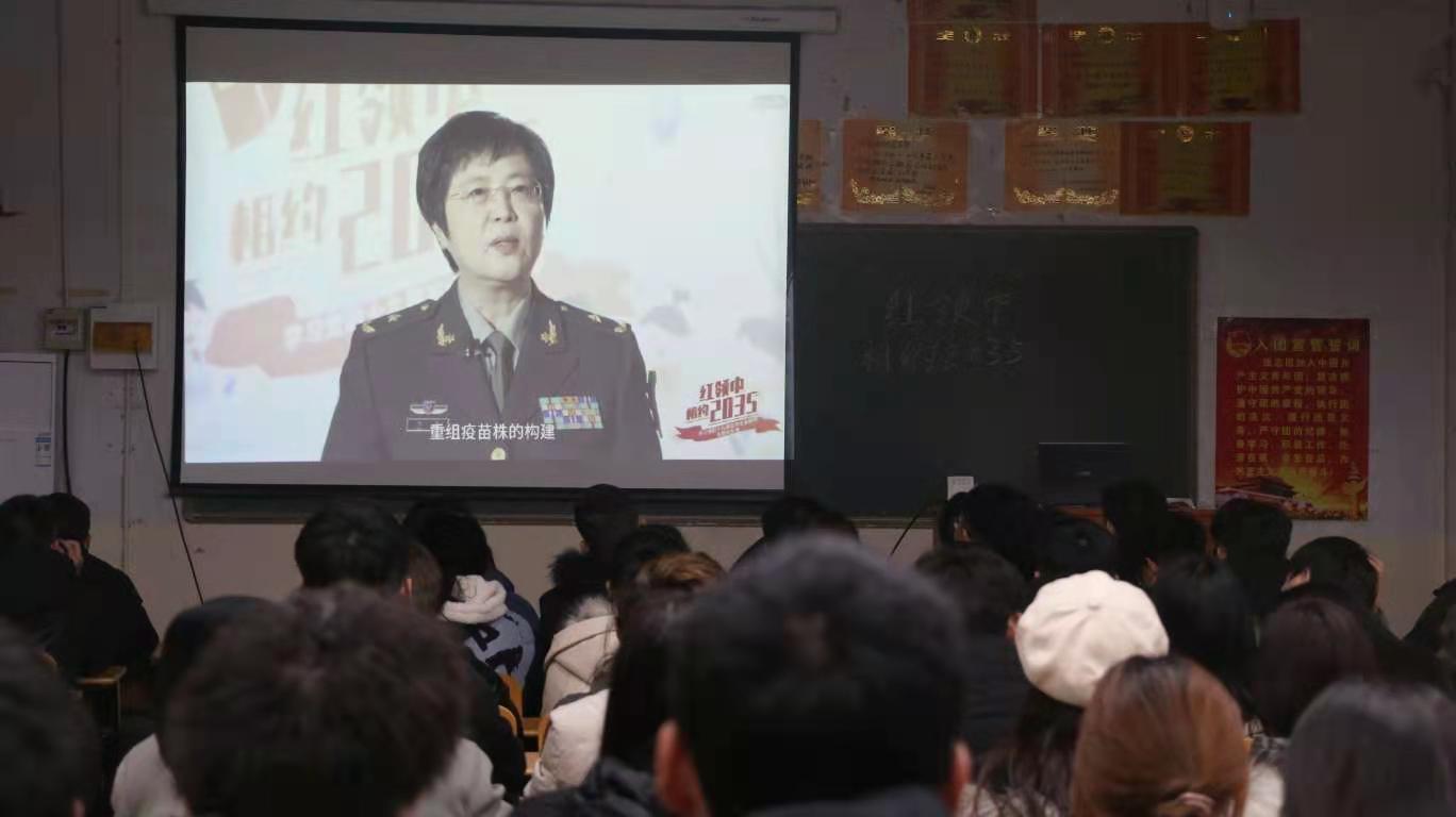 课堂上,同学们针对每个主题展开学习讨论,从一五到十三五的宣传纪录片中,深入了解国家发展,全方位回顾和感知共和国走过的70年光辉历程。在“红领巾相约2035”中,陈薇院士的“与毒共舞 为国为战”专题报告振奋人心,让我们感受到在疫情面前,一次次考验,一次次将得失、生死置之度外的崇高品质。