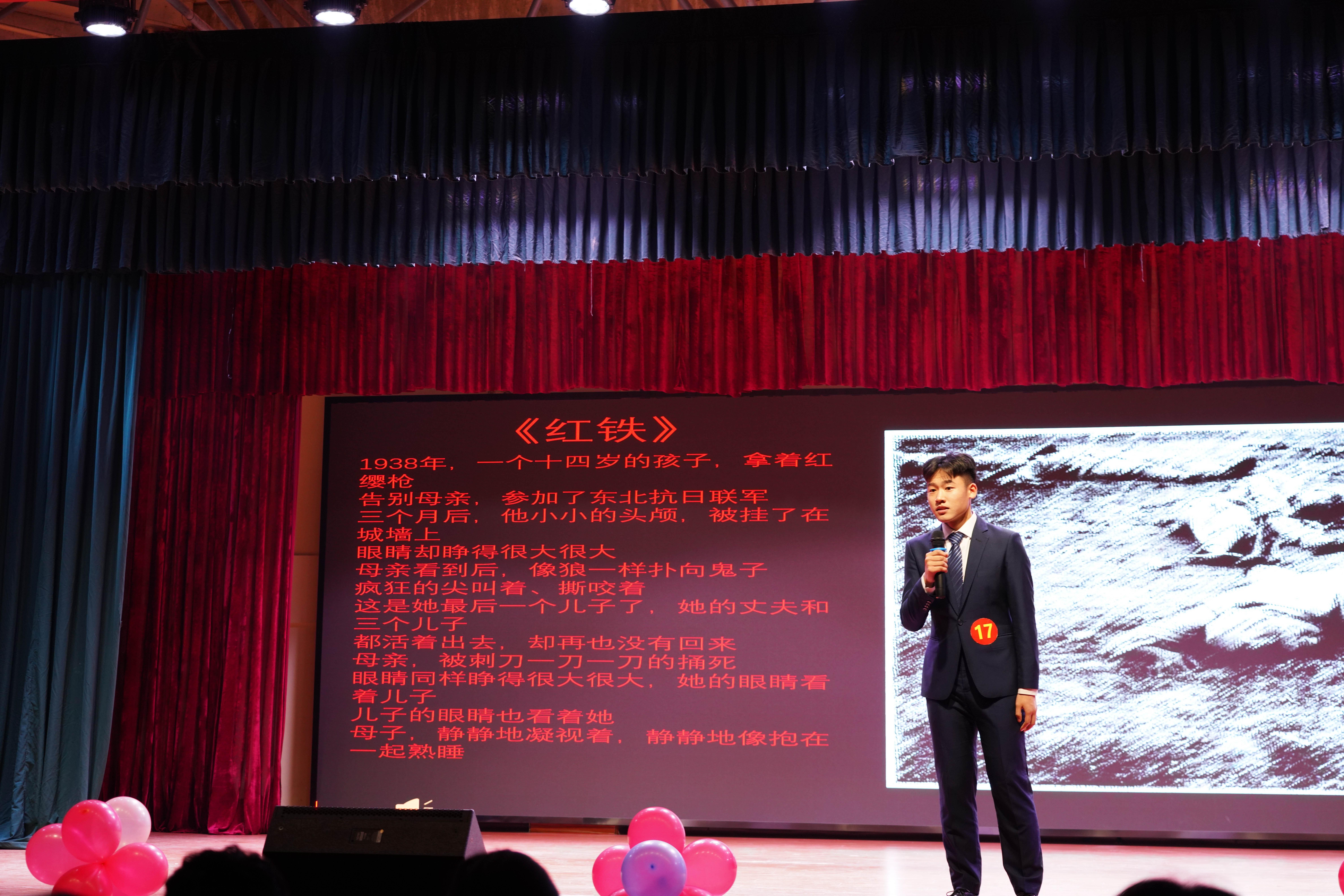 比赛分为自我介绍、自备稿件及模拟主持三个环节。选手们从容应对每个环节的挑战,整个赛场散发着语言魅力,飞扬着自信风采,洋溢着青春活力。在自备稿件环节中,经济贸易学院赵宏阳充满激情地赞颂那些在抗日战争中为国捐躯的英雄们,字里行间热情讴歌对民族、对国家深沉的爱,赢得了在场同学们的阵阵掌声。比赛期间,校网络部利用抖音公众号进行现场直播,未到场的同学们通过直播平台为选手们呐喊助威,气氛再度推向高潮。