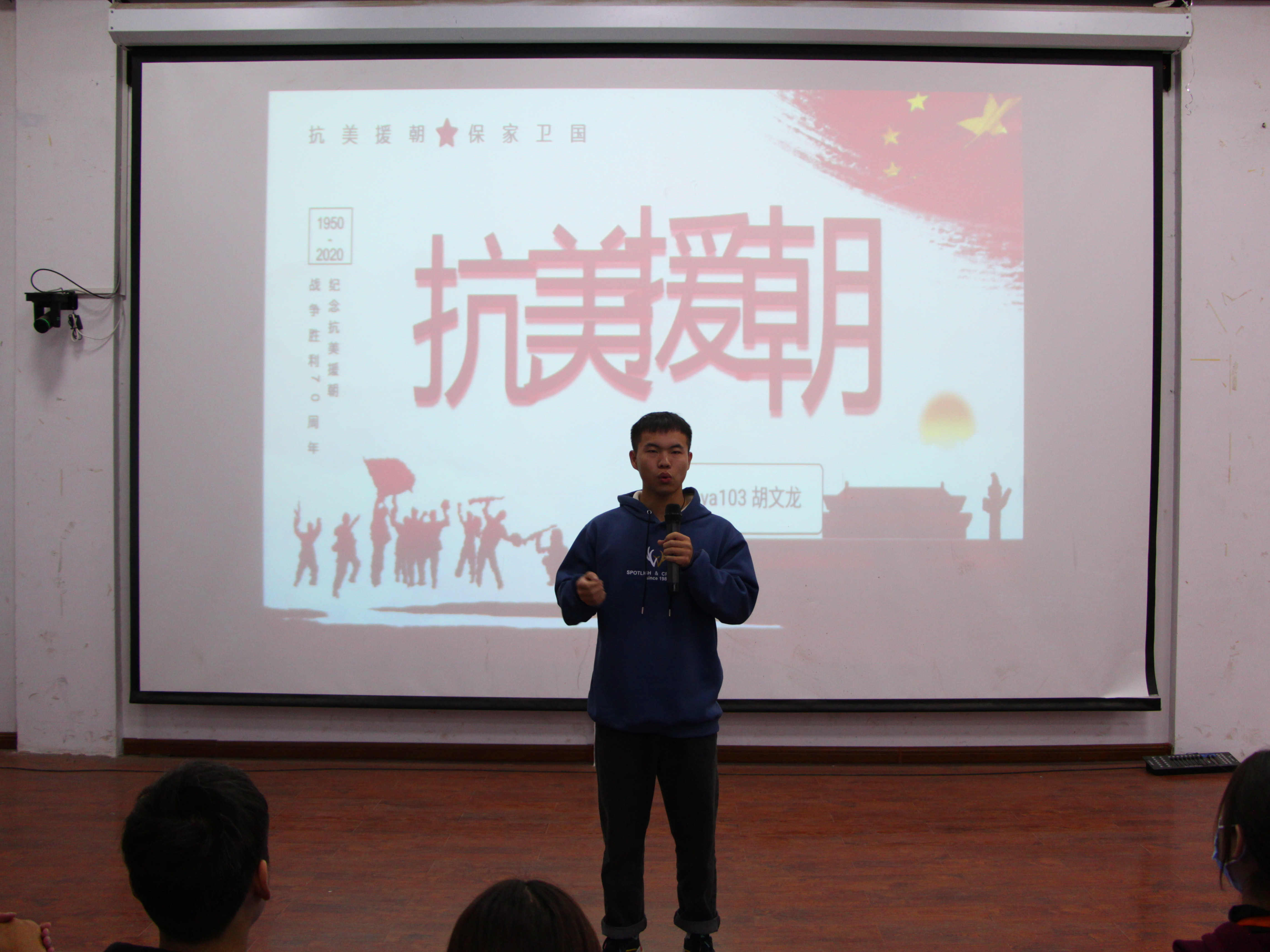 2020年10月23日中午12:30,由院团委主办,八系团总支承办的“抗美援朝70周年纪念日故事会”总决赛在报告厅一楼拉开了序幕。院团委老师及八系团总支负责人出席并担任了此次故事会的评委。