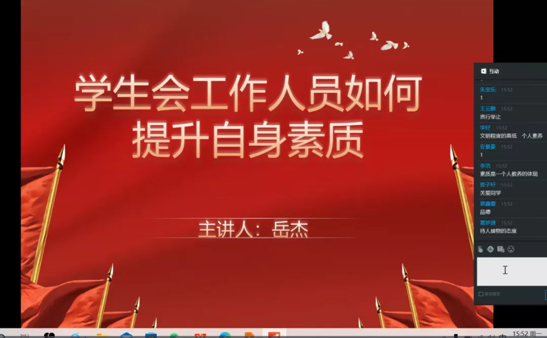 校学生会以《如何做一个敢为人先、敢承责任的学生干部》《学生干部如何全心全力为同学们服务》为主题开展线上座谈会。