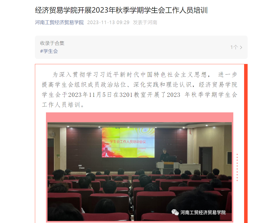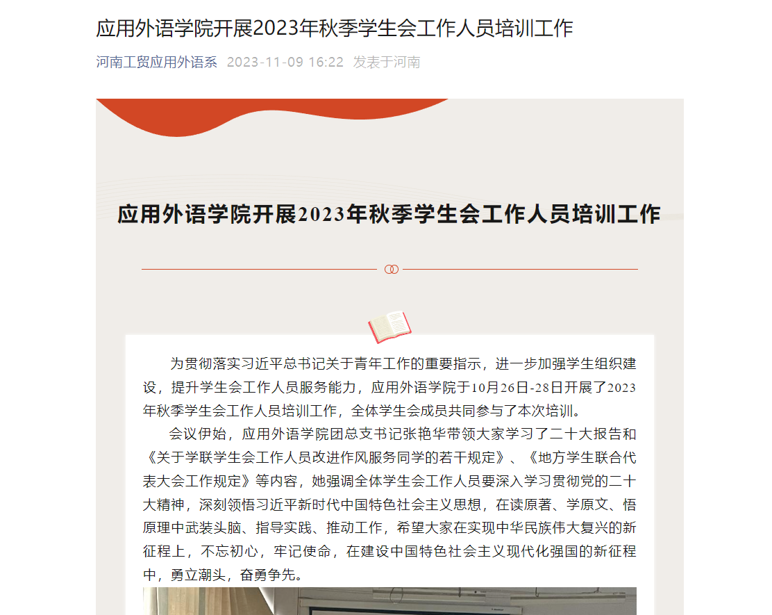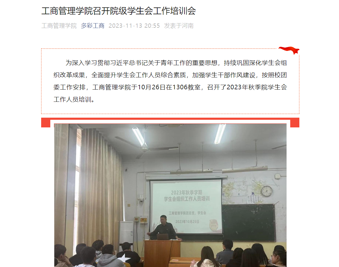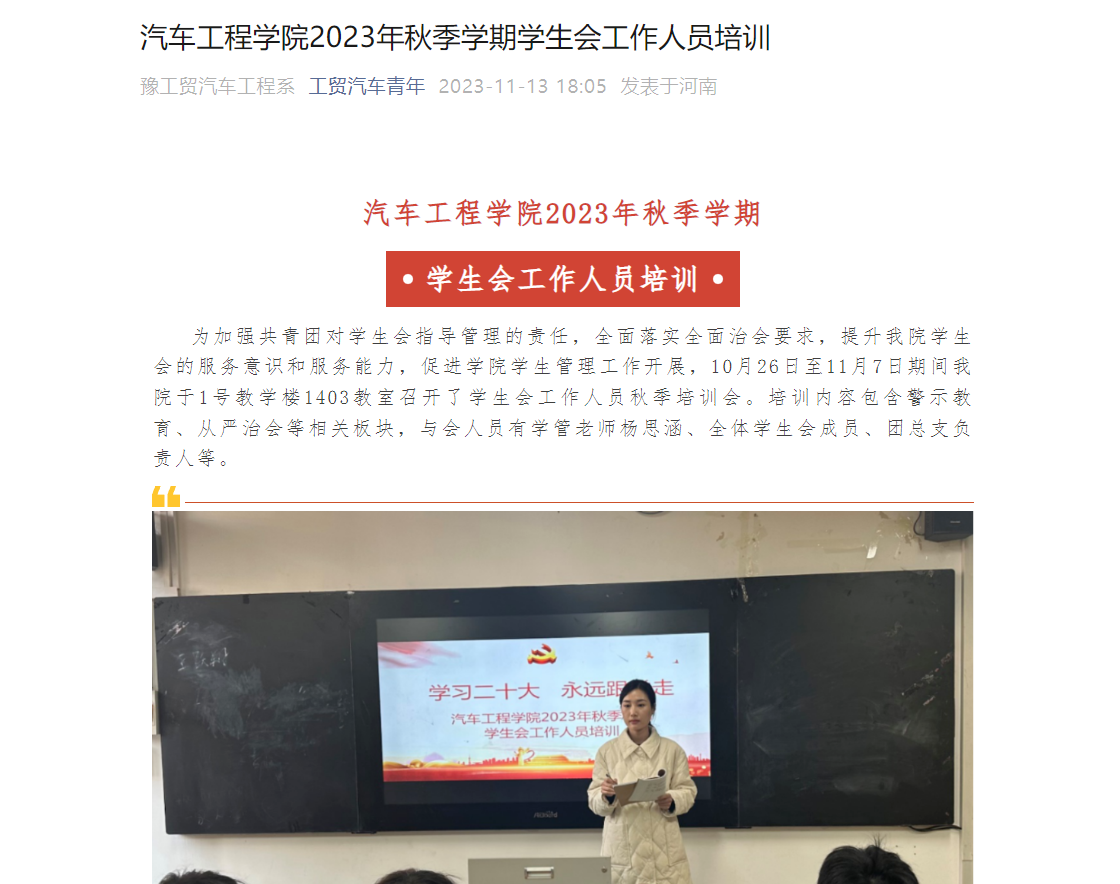 各二级学院团总支积极组织本学院学生会工作人员的培训。