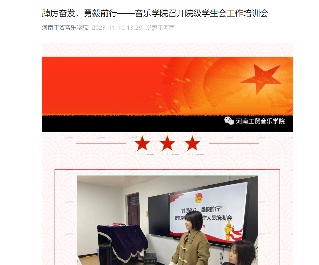为深入学习贯彻习近平总书记关于青年工作的重要思想,进一步加强学生组织建设,以规范学生会工作作风,提高我校学生会工作人员的思想认知,健全学生会组织全体工作人员培训制度,增强共青团对学生会指导管理的责任感,全面落实从严治会要求,我校在2023年10月—11月开展了2023年秋季学期校院两级学生会工作人员培训,校院两级学生会全体工作人员参加了此次培训。