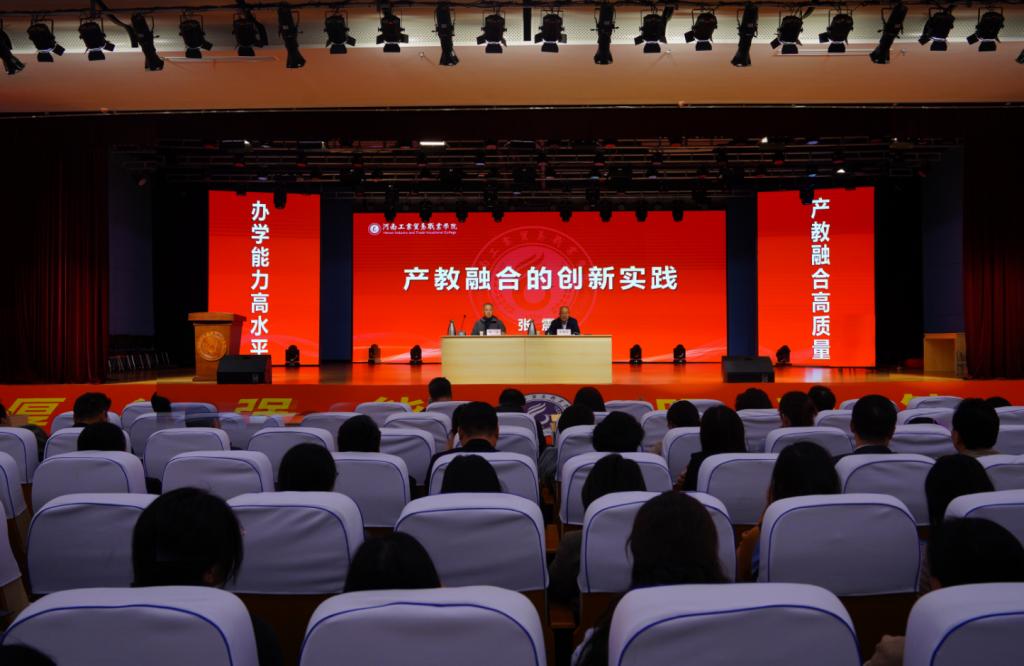 为贯彻落实党的二十届三中全会对深化教育综合改革的战略性部署,加快构建职普融通、产教融合、科教融汇的职业教育体系,落实全国、全省教育大会精神,10月22日下午,河南机电职业学院原党委书记、河南省职业技术教育学会会长、国家督学张震教授应邀到我校作“产教融合的创新实践”讲座。讲座由校党委书记李国锋主持,全校教职工参加。