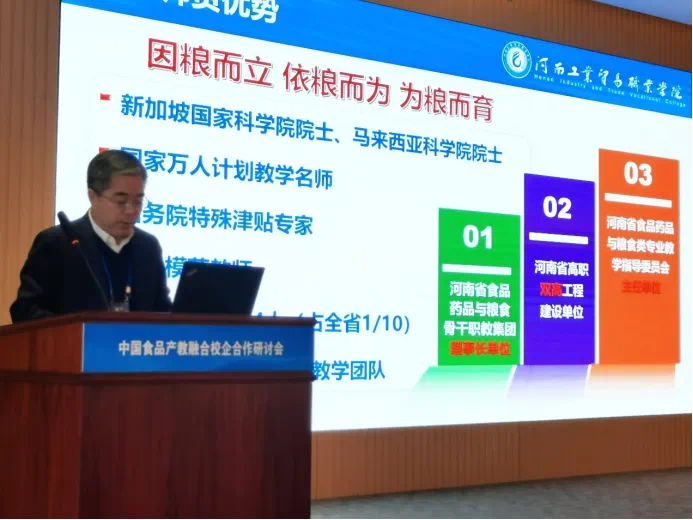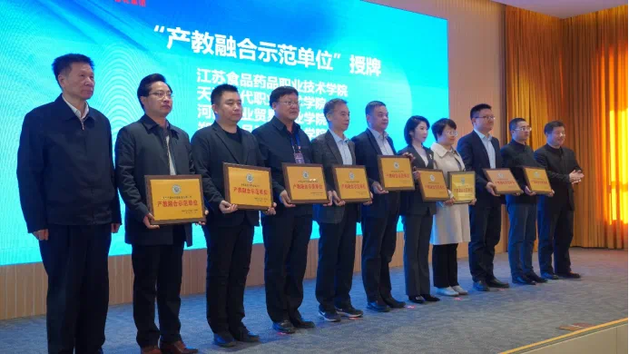 会议公布了产教融合示范单位、全国食品工业行业“十四五”职业教育规划教材编写先进单位、高校食品采购推荐单位名单。我校获得了产教融合示范单位殊荣。