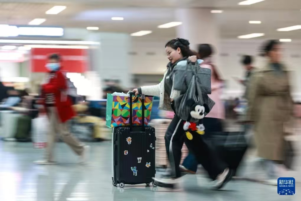 24日,旅客奔跑在杭州东站候车室内。新华社记者 江汉 摄
