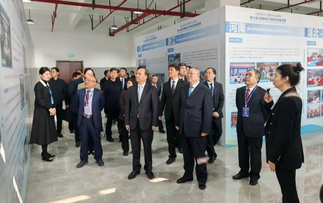 11月4日,在全国第七届粮食行业职业技能竞赛开赛之际,国家发展改革委党组成员、国家粮食和物资储备局党组书记、局长刘焕鑫,在河南省副省长李酌,中华全国总工会书记处书记、党组成员张新武等领导的陪同下莅临我校理工实训楼等竞赛场地,开展竞赛巡考督导,并参观了我校的技能成果展与各省的初赛成果展、优秀选手风采展及合作企业展。
