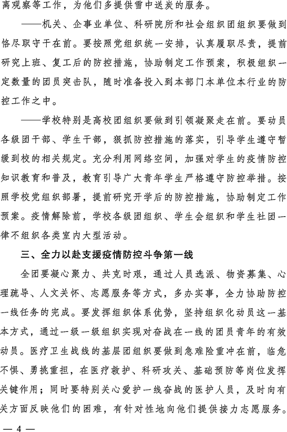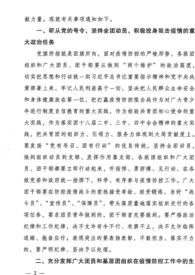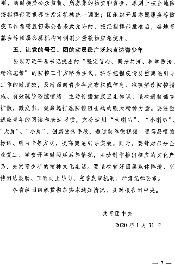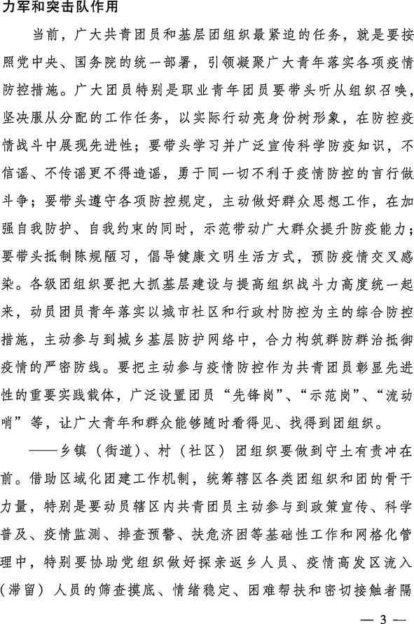 附件:《共青团中央关于坚持党的领导,全团动员,在防控疫情阻击战中充分发挥共青团生力军和突击队作用的通知》
