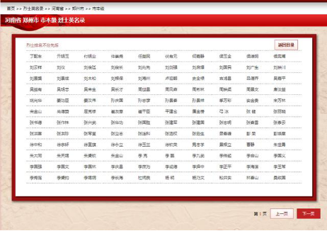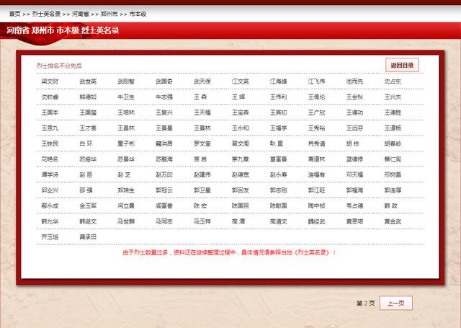 三、网页下拉,找到河南省烈士英名录,进入后点击“郑州市市本级”