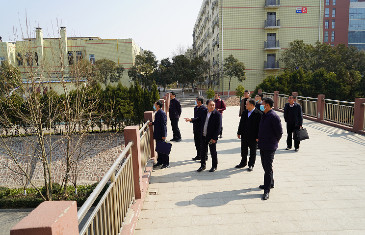 李培俊一行实地查看了校园环境,先后参观了红旗广场、时光长廊、体育馆等地,对学校的发展给予了充分的肯定,并对有关工作提出了指导意见。