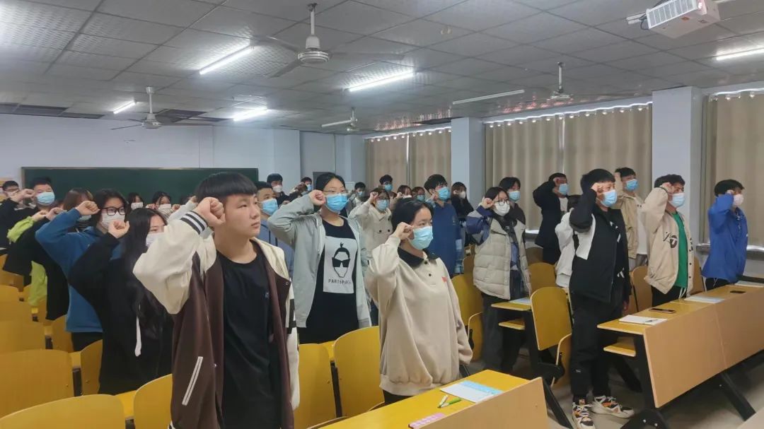 开班仪式在庄严的国歌声中拉开帷幕,刘卫红代表学校党委对本期业余团校顺利开班表示祝贺,为参训学员们提出四点要求:第一,珍惜机会,认真学习,提高认识;第二,充分发挥先锋模范带头作用;第三,要立场坚定,旗帜鲜明,弘扬正气;第四,在建团百年之际,要加强党史、团史的学习,详细了解中国共产党和中国共产主义青年团的光辉奋斗历程。用理论知识来充实、武装头脑,不但在行动上入团,更要在思想认识上入团,积极践行社会主义核心价值观。以优异的成绩迎接党的二十大胜利召开。张现振结合疫情防控要求,对团校纪律、学员考核评估、培训内容和形式等进行了解读。要求每一位学员要严格遵守团校的规章制度,树立正确的学习态度。最后,团员代表马一凡带领学员重温入团誓词。
