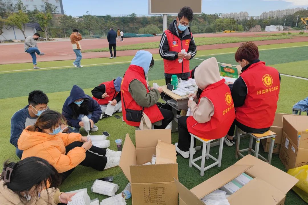 核酸检测志愿服务队的主要任务是帮助医护人员搭建检测棚,运输必需品,拆分检测采集棒,维持核酸检测现场的秩序。每天早上七点开始核酸检测,他们通常要五点多就要起床,早早到场,先帮助医务人员准备好场地,摆好监测点。由于检测人数多,队伍排的很长,他们要根据每个队伍的人数,灵活机动的规划方案;有时有些同学有烦躁情绪,他们还要劝导同学们端正心态。几天的志愿服务下来,他们更加理解核酸检测工作人员的辛苦,也更加珍惜来之不易的校园疫情防控成果。