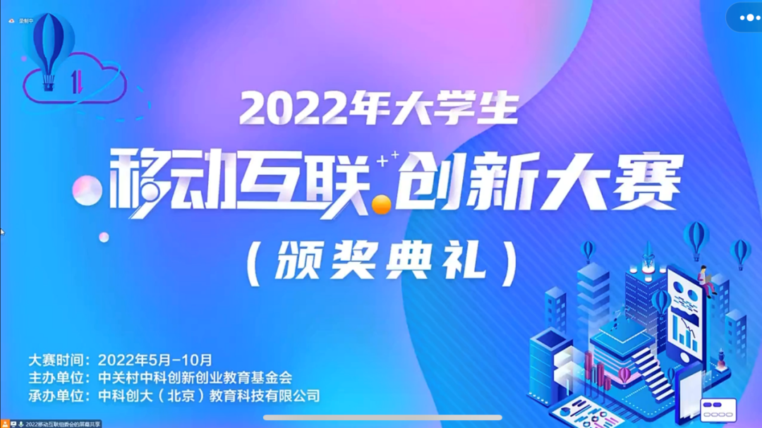 2022年11月10日,“2022年大学生移动互联创新大赛颁奖典礼”在线上举行,我校选手取得全国总决赛一金一银的优异成绩,并荣获优秀组织奖。