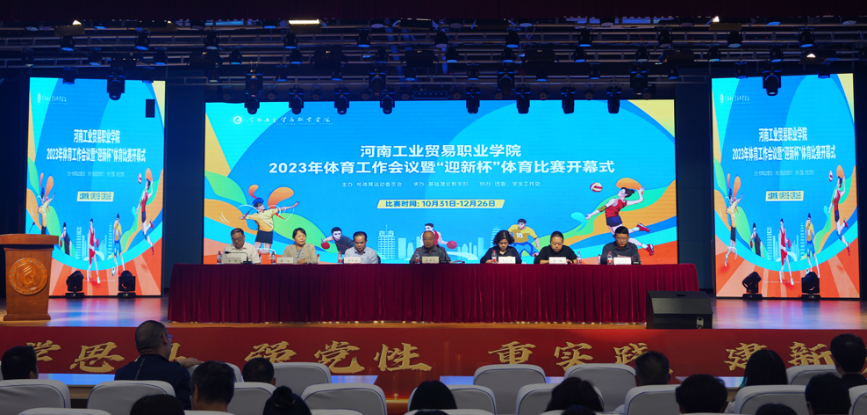 金风萧瑟秋光妙,激情满怀英气豪。10月31日下午,河南工业贸易职业学院2023年体育工作会议暨“迎新杯”体育比赛在学术报告厅开幕。全体校领导出席会议,学校体育工作委员会成员、各二级学院党政负责人及师生代表参加开幕式,党委副书记柴瑞帅主持。