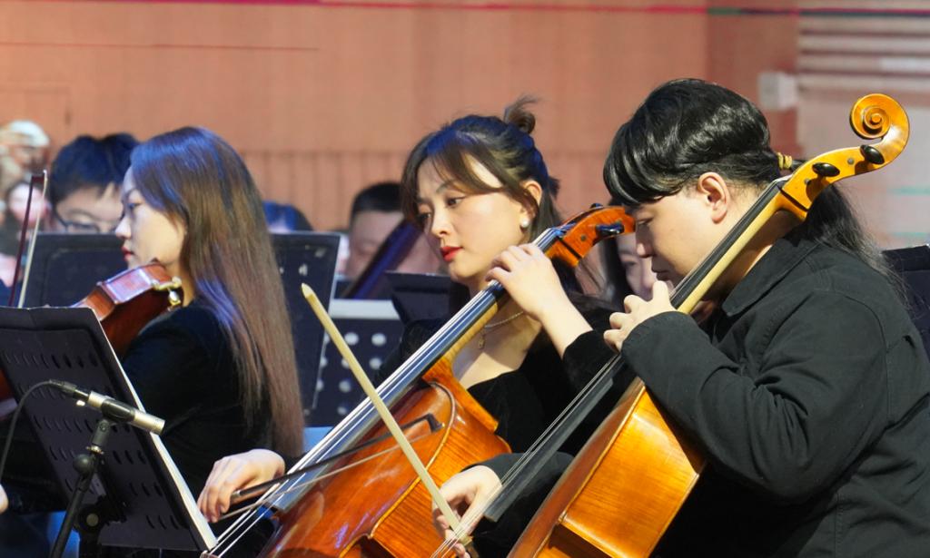 本次演出在一首极具民族特色的音乐管弦乐《卡门序曲》中拉开了帷幕,其恢弘壮阔的旋律和欢腾热烈的曲调深入人心。管弦乐《匈牙利舞曲第五号》,节奏自由,旋律优美,速度变化激烈,带有一定的即兴性,是勃拉姆斯全部作品中最广为世人所知的乐曲。《茉莉花》这首乐曲通过对茉莉花的赞美,表达出中国民间劳动人民之间质朴真诚的美好感情,悠扬的旋律徐徐道出人们对美好生活的热爱和向往。《第二圆舞曲》《帕拉迪奥》《康康舞曲》、音乐会组曲《天鹅湖》选段,风格迥异,美轮美奂,为我们带来一场盛大的听觉盛宴。乐团指挥马骥先生用生动、直观的讲解为各位同学介绍了常见的管弦乐器,用实际行动践行艺术普及、文化惠民。音乐会组曲《红色娘子军》选段,管弦乐《掀起了你的盖头来》《北京喜讯到边寨》《大起板》奏响了文化与地域碰撞出的经典,表现了人们对真、善、美的向往和追求,呈现出中国优秀传统文化独特的审美韵味。