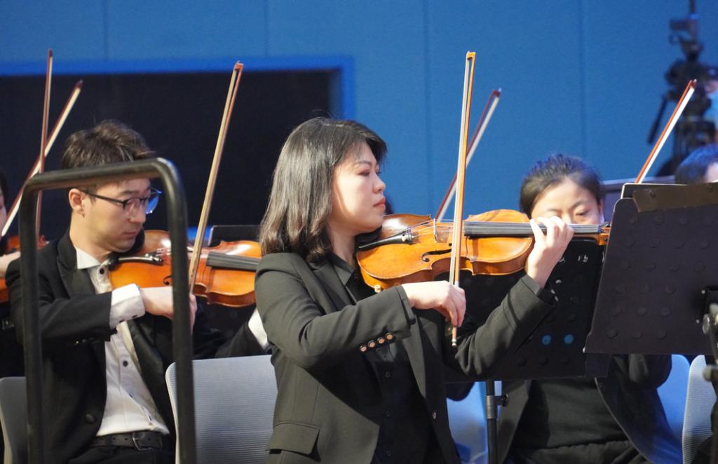 《我的祖国》悠扬的乐曲,充满激情的旋律把现场的观众带入了一幅锣鼓喧天、气势磅礴、红旗飘飘的欢乐场景。音乐会在《拉德斯基》激昂震撼的演奏中圆满落幕,现场掌声雷动、喝彩声震耳欲聋,观众们久久不愿离去。“我从没听过现场版的音乐会,今天的音乐体验太精彩了,震撼无比。”“非常感谢学校和河南交响乐团,让我们不出校门就能享受到如此高水平的音乐会。”在场师生感动地说。