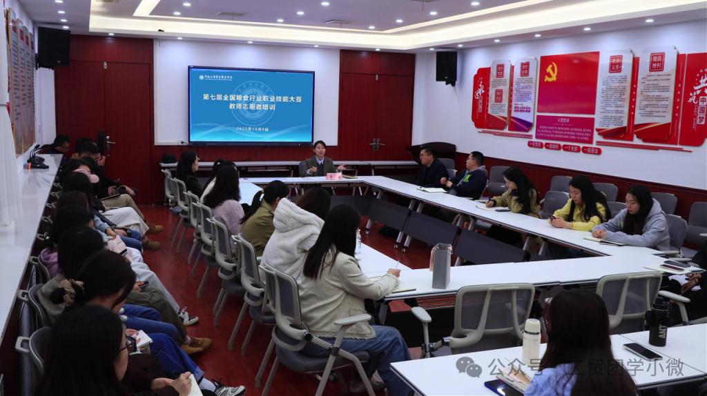 10月9日,我校团委举办第七届全国粮食行业职业技能大赛教师志愿者培训会。团委书记李丹主持会议并作工作部署,全体负责各省参赛队伍对接工作的教师志愿者代表参加会议。