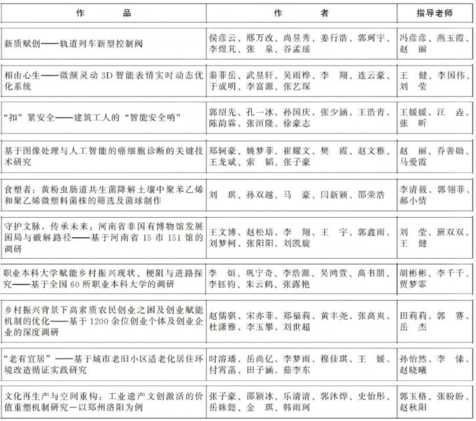 近日,第十七届“挑战杯”河南省大学生课外学术科技作品竞赛获奖名单揭晓。我校师生再创佳绩,共斩获特等奖1项、一等奖10项、二等奖3项、三等奖10项,获奖数量与质量均实现历史性突破,彰显了我校在人才培养与科技创新领域的育人成效。