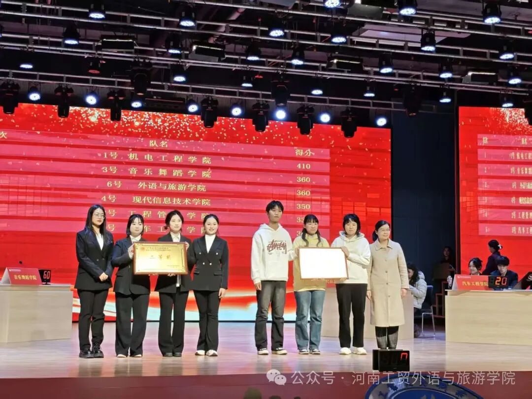 2025年11月18日下午1:30,我校“知粮爱校 溯源致远”粮食专业常识与校史校情知识竞赛决赛在龙湖校区学术报告厅隆重举行。我院代表队由25旅游103候玉欣、25应英101朱重霖、25旅游103陈柏言组成。经过多轮激烈角逐,队员们凭借扎实的知识储备、默契的团队协作和沉稳的临场表现,一路过关斩将,最终荣获二等奖,展现了我院学子良好的综合素养与精神风貌。