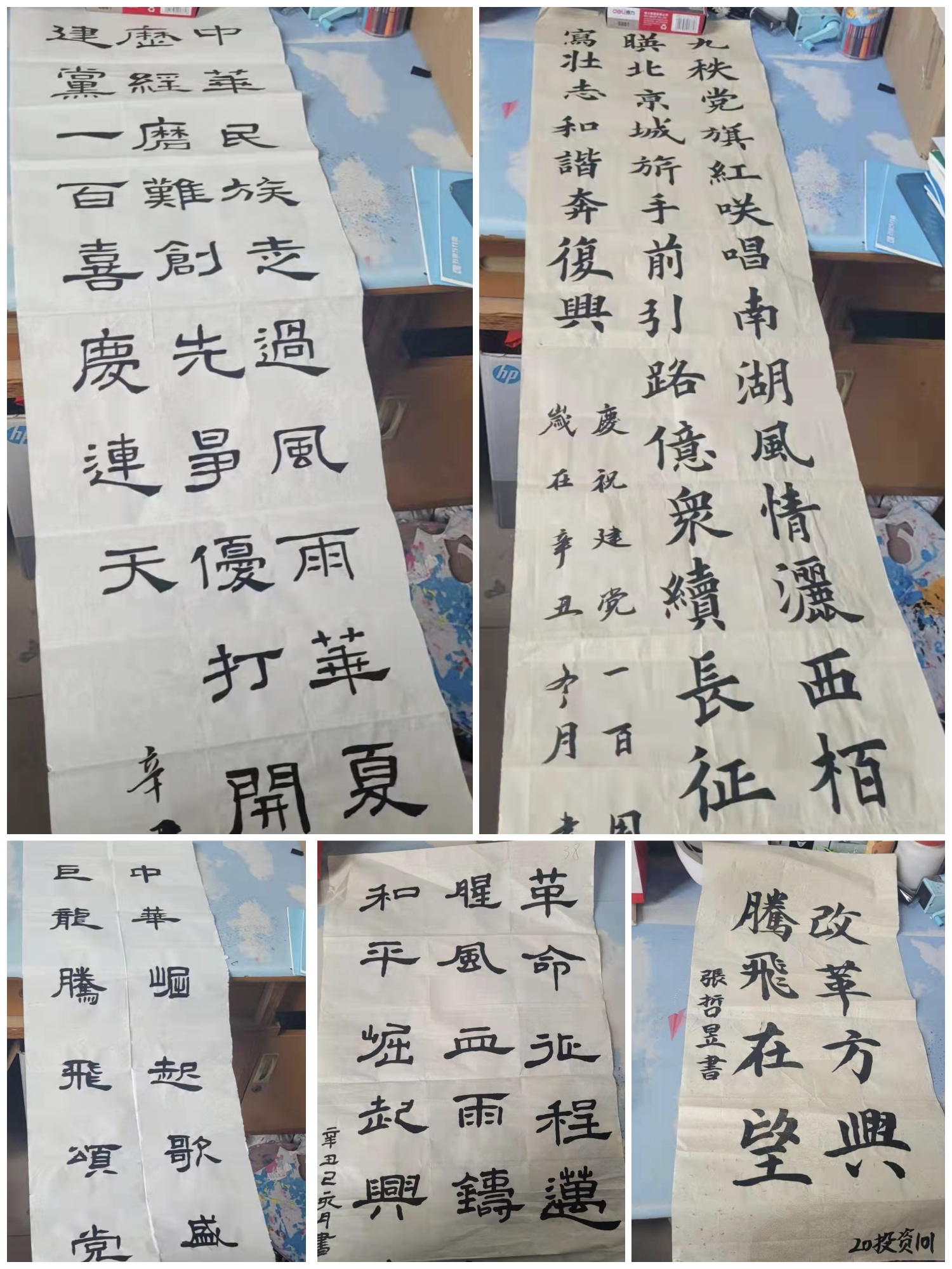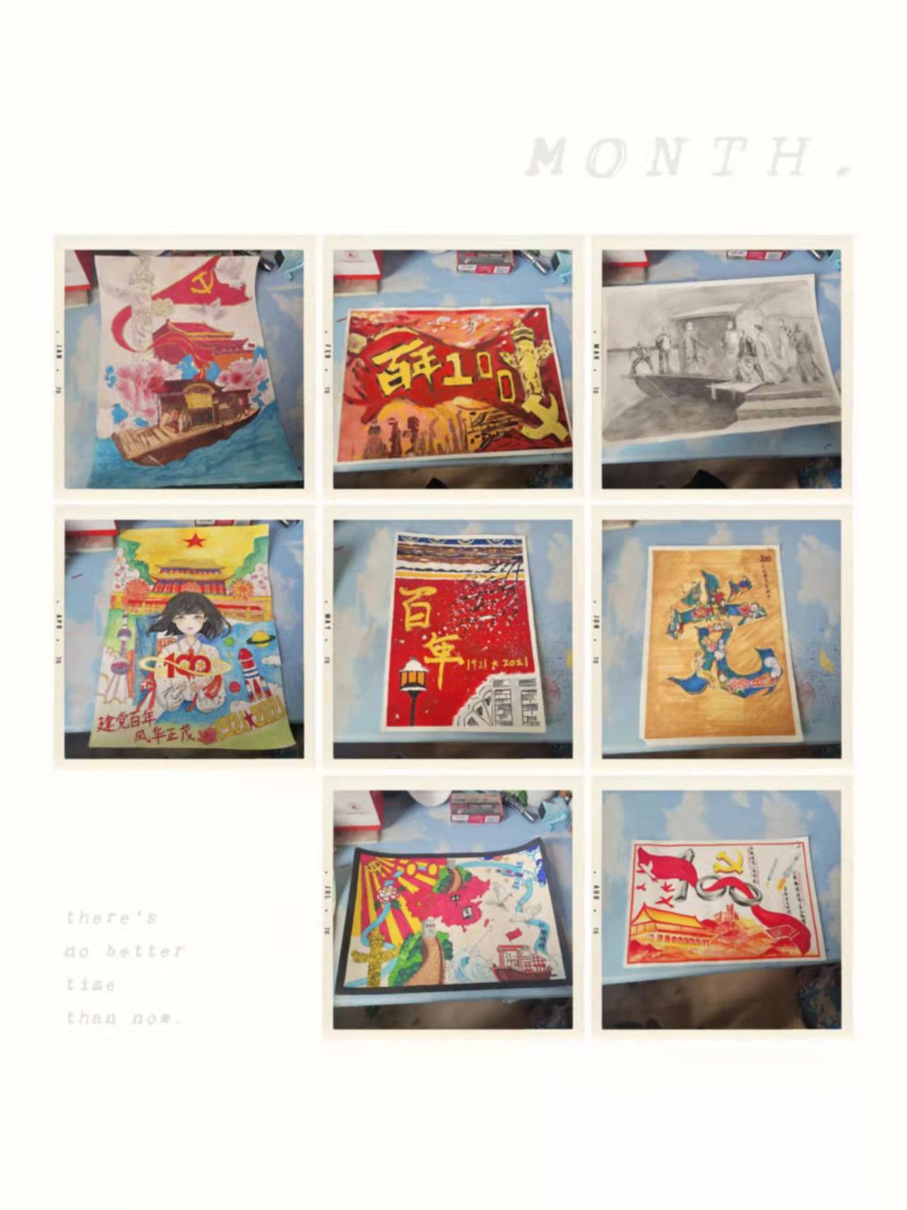 为庆祝建党100周年,教育引导广大团员青年听党话,跟党走,进一步培养青少年一代的爱国主义情怀。以昂扬的斗志和只争朝夕的奋斗精神,坚定理想信念,在提高综合素质的同时积极投身实现中华民族伟大复兴的中国梦。校团委于11月17日—11月25日组织开展“峥嵘百年史,砥砺中国行”——“庆祝建党100周年”主题书画作品比赛。