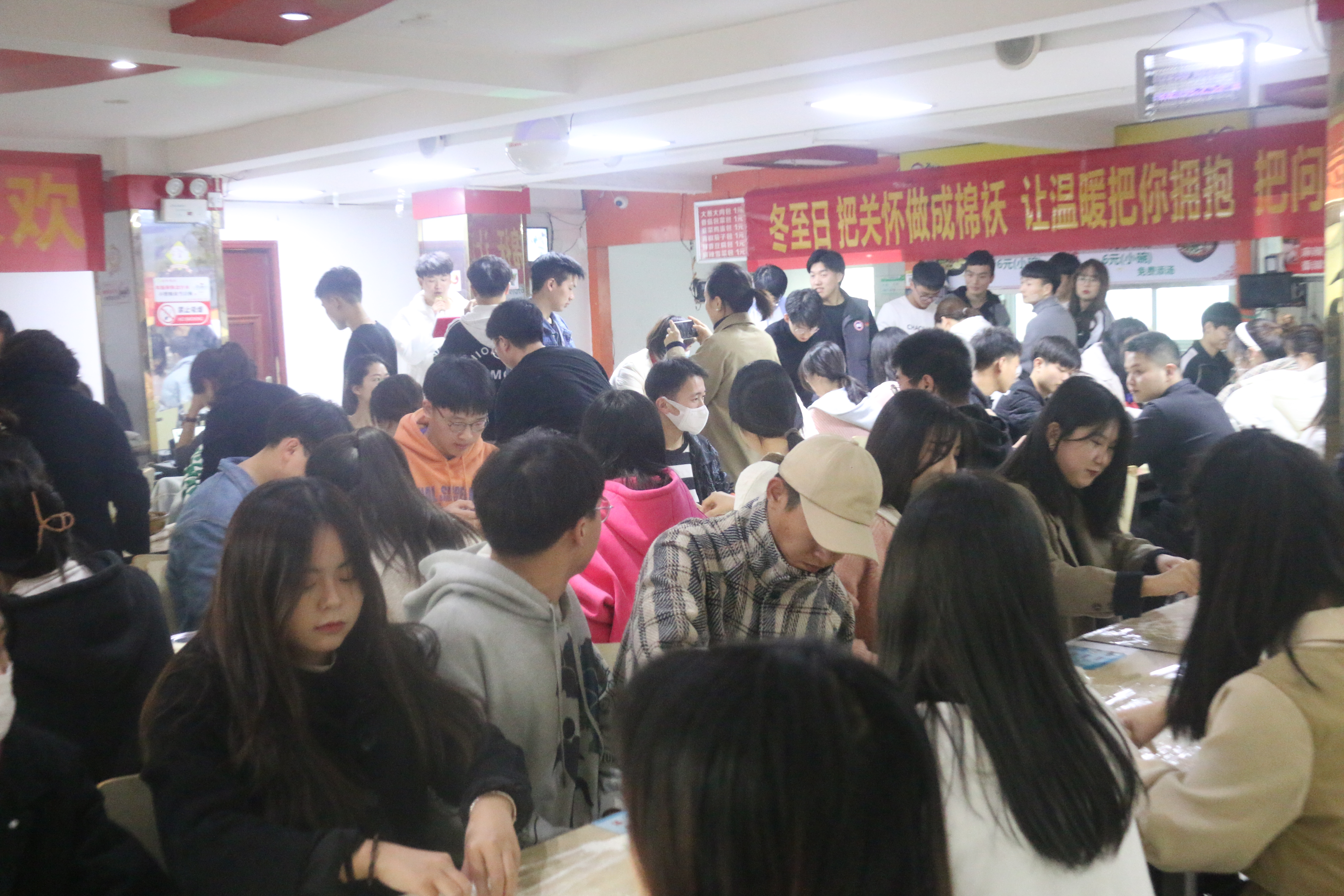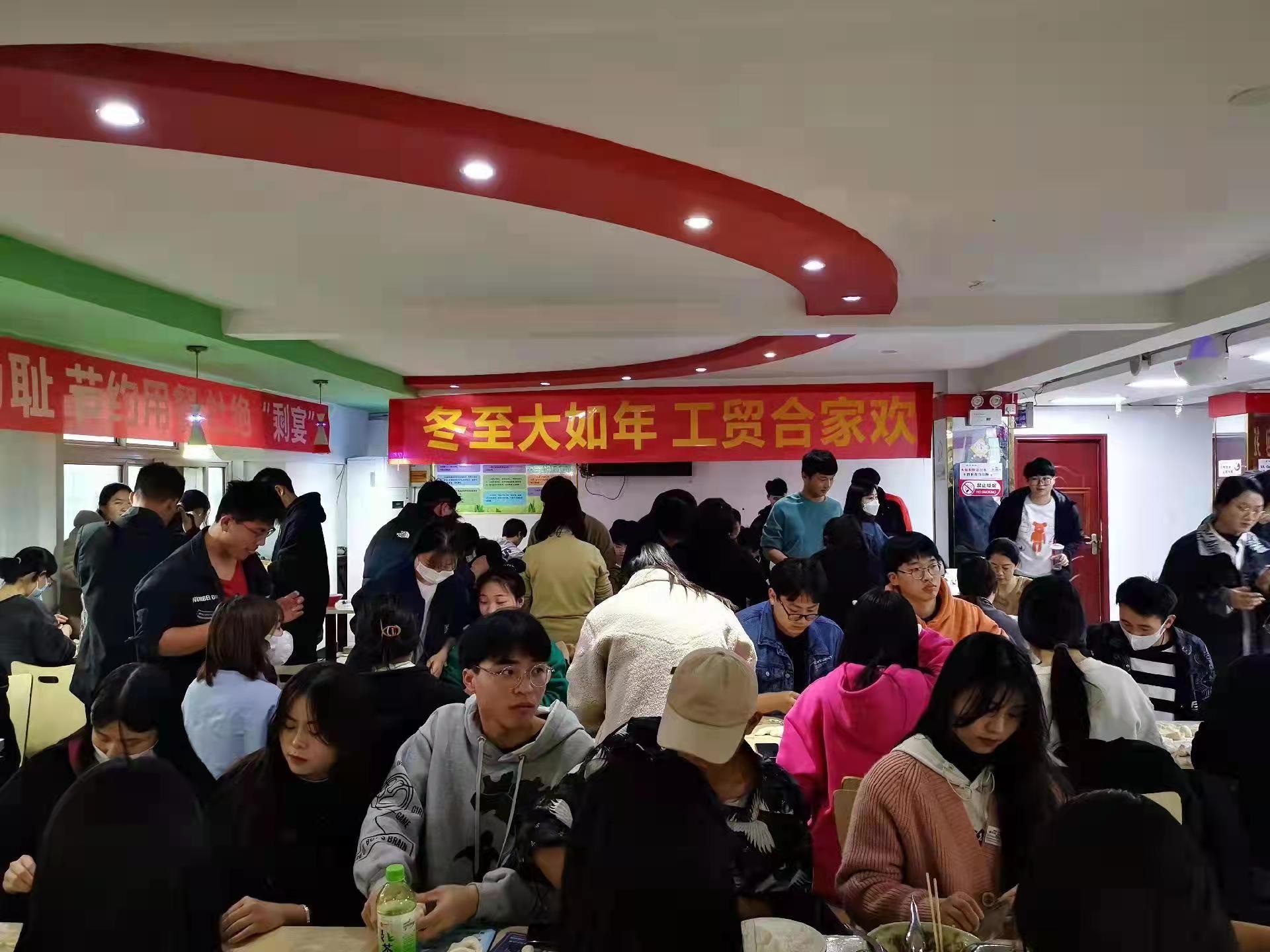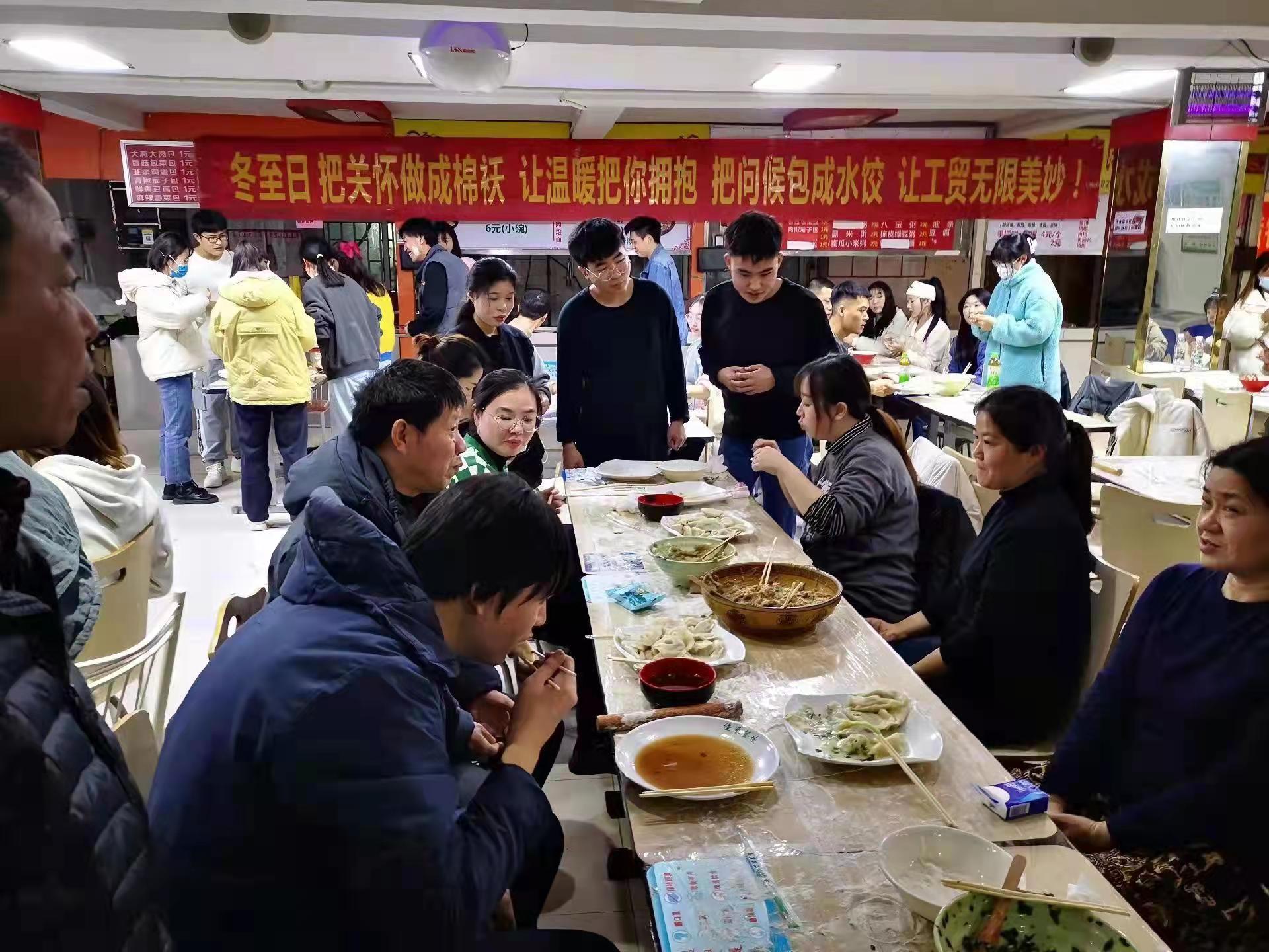 冬至是二十四节气之一,更是中华民族的传统节日。为了弘扬中华民族传统文化,加深大学生对民族习俗的了解,同时也能让他们在校学习、生活期间感受到“家”的温暖。2021年12月21日下午放学后,校团委在龙湖校区杏园餐厅一楼开展了“冬至大如年 工贸合家欢”师生包饺子联欢活动。我校党委委员、副校长刘卫红、团委、学生工作处及二级学院领导和老师、各学生组织主要学生干部欢聚一堂,共庆佳节。