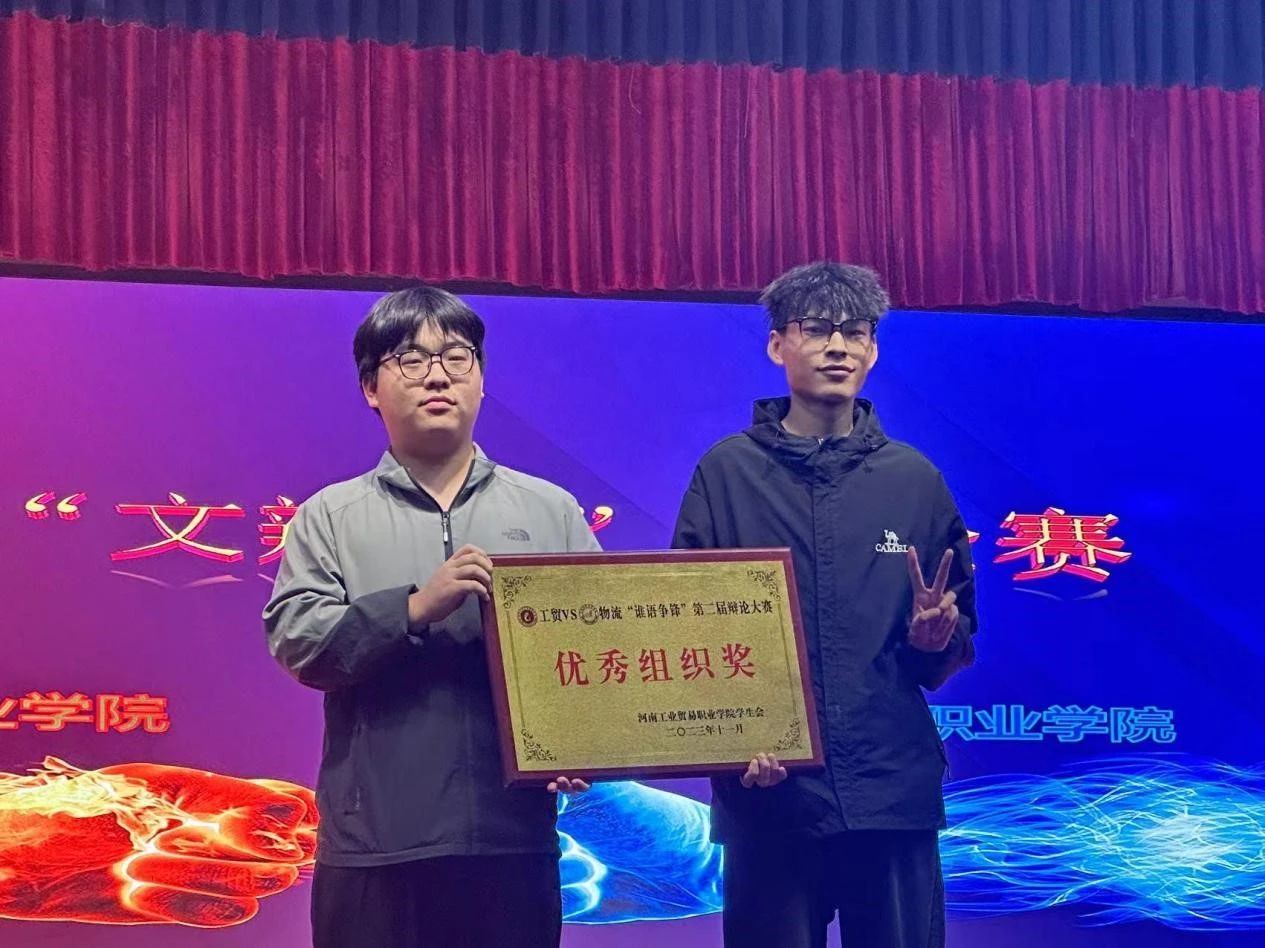 感谢河南物流职业学院带来的优秀辩手让本次比赛如此精彩,经决定授予河南物流职业学院“优秀组织奖”,为本次优胜校区比赛画上圆满的句号。辩论赛联谊活动丰富了两校学生的课余文化生活,也拉近了两校的距离,同时也给两校学生会成员间交流提供了一个良好的平台,为两校以后继续合作打下良好的基础。