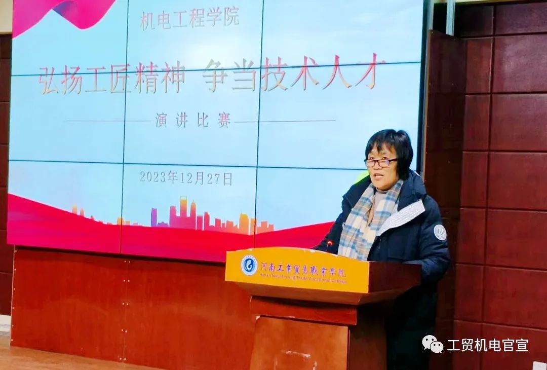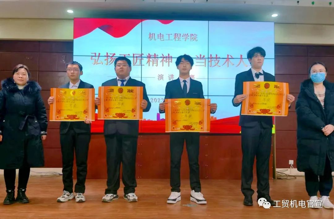 为了激励青年一代争做大国工匠,勇担时代大任,走技能强国,技能成才之路,培养学生成为具有良好职业道德、职业能力和职业品质的优秀青年。2023年12月27日晚,机电工程学院开展的“弘扬工匠精神,争当技术人才”主题演讲比赛决赛在3101教室顺利举行。此次演讲比赛于12月初拉开序幕,经过初赛、复赛,共有12位选手进入决赛。