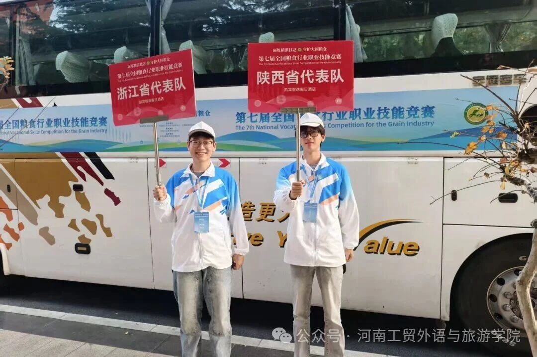 2025年11月4日,第七届全国粮食行业职业技能竞赛在我校隆重开幕。在这场高规格的全国性盛事中,外语与旅游学院的师生和志愿者们,用专业的素养与青春的热情,成为了赛场内外一道靓丽的风景线,为赛事的顺利举行提供了坚实保障。