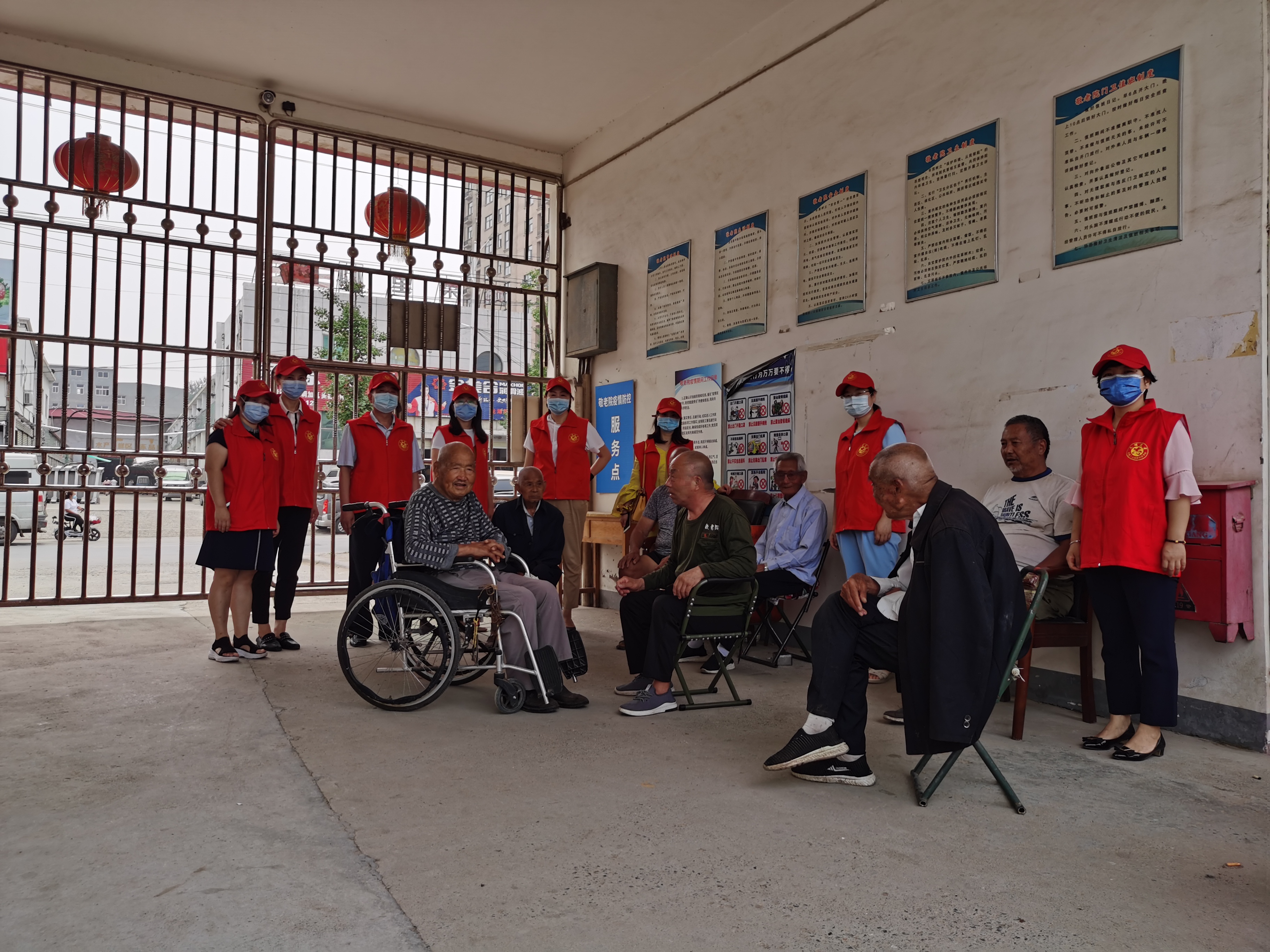 慰问活动现场,党员志愿者们陪老人们聊天,与老人亲切交谈,详细了解老人们近期的生活和身体状况,叮嘱老人在季节变化时要注意身体,夏季饮食要注意卫生,新冠肺炎流行病中注意保护啊好身体,行动要注意安全。党员志愿者们用实际行动践行着中华民族尊老、敬老、爱老的传统美德与社会新风尚。敬老院的刘院长看到我们来了,特别开心。七十多岁的老人像个孩子一样向我们倾诉着:由于新冠肺炎疫情的影响,敬老院里好久没有这么热闹了,老人们都盼着呢。不停的说:“你们来了,让我们觉得不孤单了,我们高兴啊!”