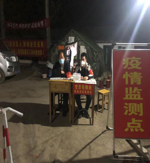 19级的楚景远主动报名参加了本村的疫情防控工作。为了不让疫情传入,他和村干部做全村人的守护者,替村民群众把好门,不管白天黑夜,风霜雨雪,每天坚持在执勤点执勤。