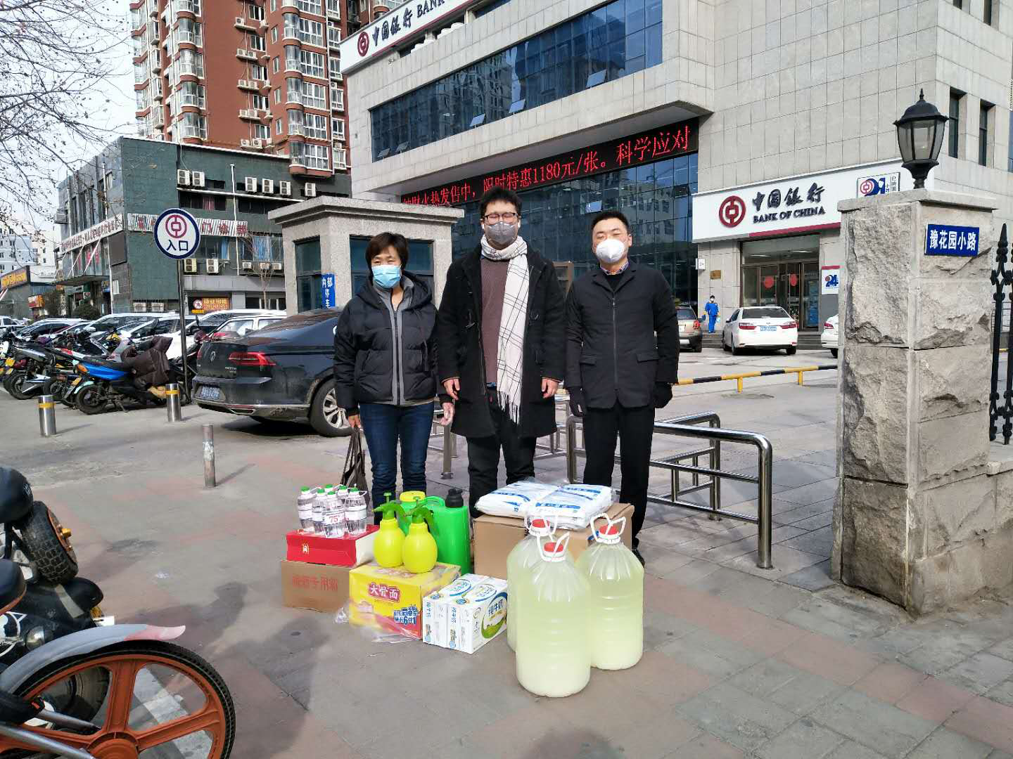 2月19日上午,我院机电工程系19级新能源汽车技术3班李盈昊同学将1000个医用一次性口罩、150斤84消毒液原液、12斤75度酒精、10个压力喷壶和1个双肩喷雾器等紧缺防疫物资交给机电系副主任周艳丽和学管办老师,连同17级汽车检测与维修技术2班张昊同学捐赠的4箱牛奶火腿肠方便面等物资,在学院办公室的支持下,随即转运到我院龙湖校区防疫指挥部办公室,汇聚到全院齐心抗疫情的支援力量中。