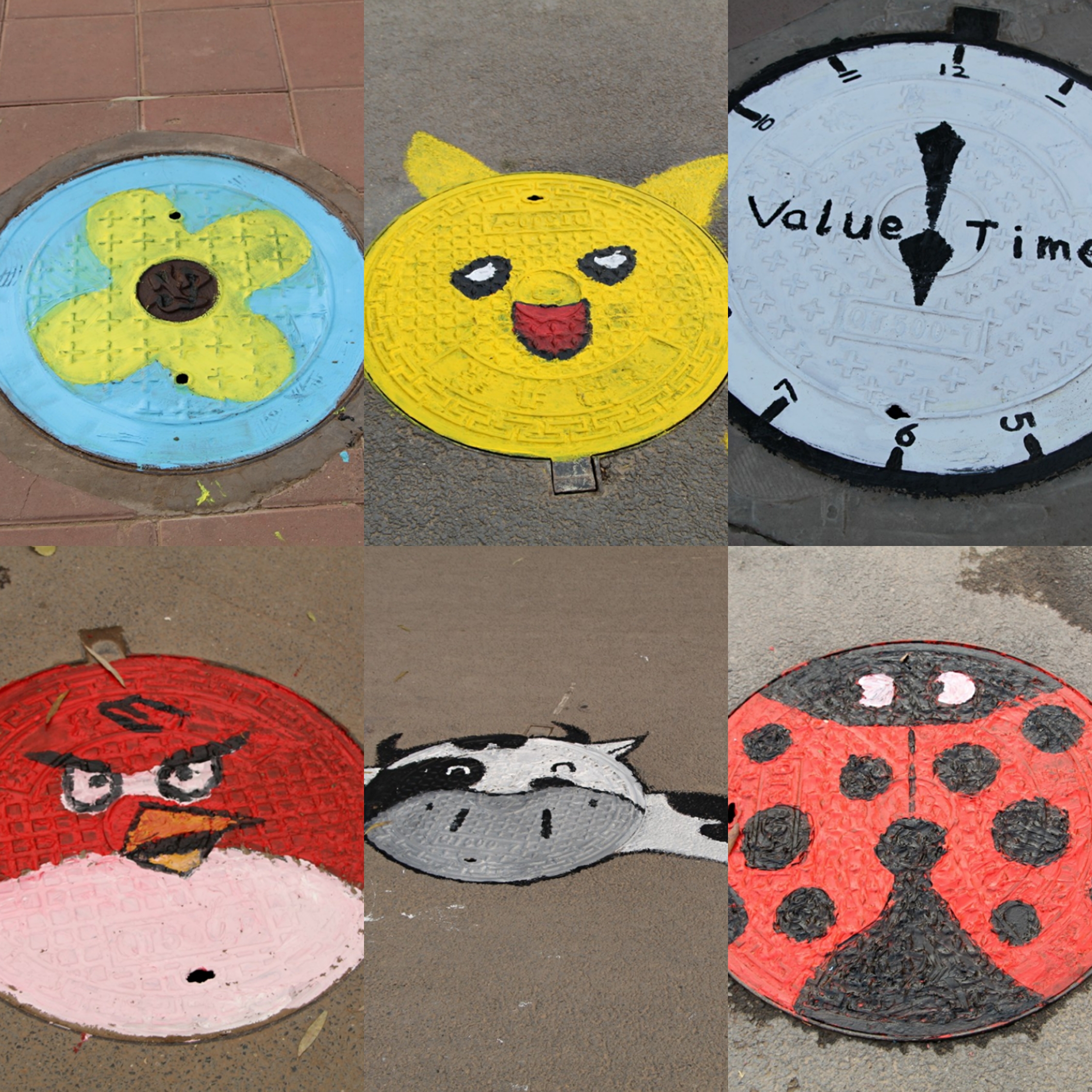 此次涂鸦小组共有75人,历时3天完成了对校园井盖的涂鸦,为校园增添了一道亮丽的风景线。