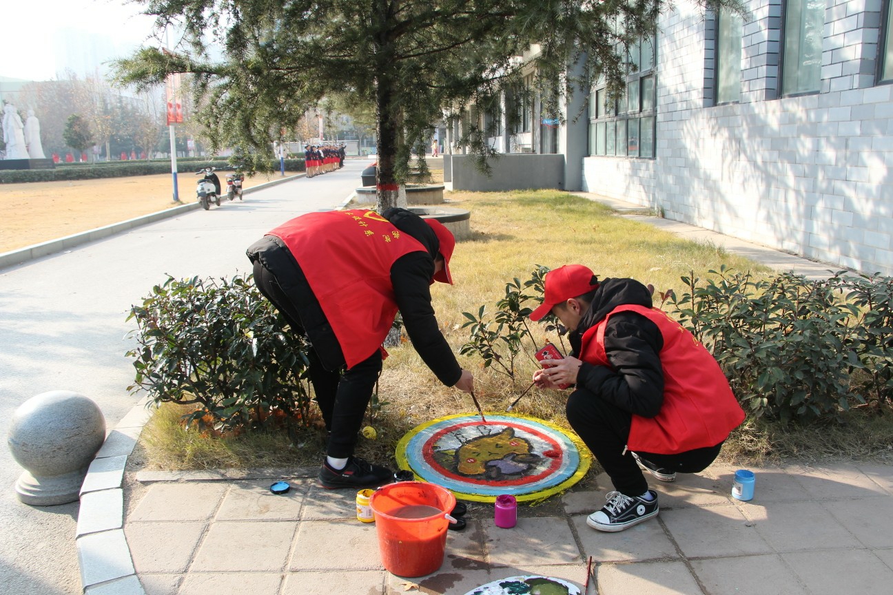 为了美化校园环境,12月13日至14日,我院青年志愿者组织主办了以“创意涂鸦,文明校园”为主题的井盖涂鸦活动,使校园窨井盖焕发了新的生机。
