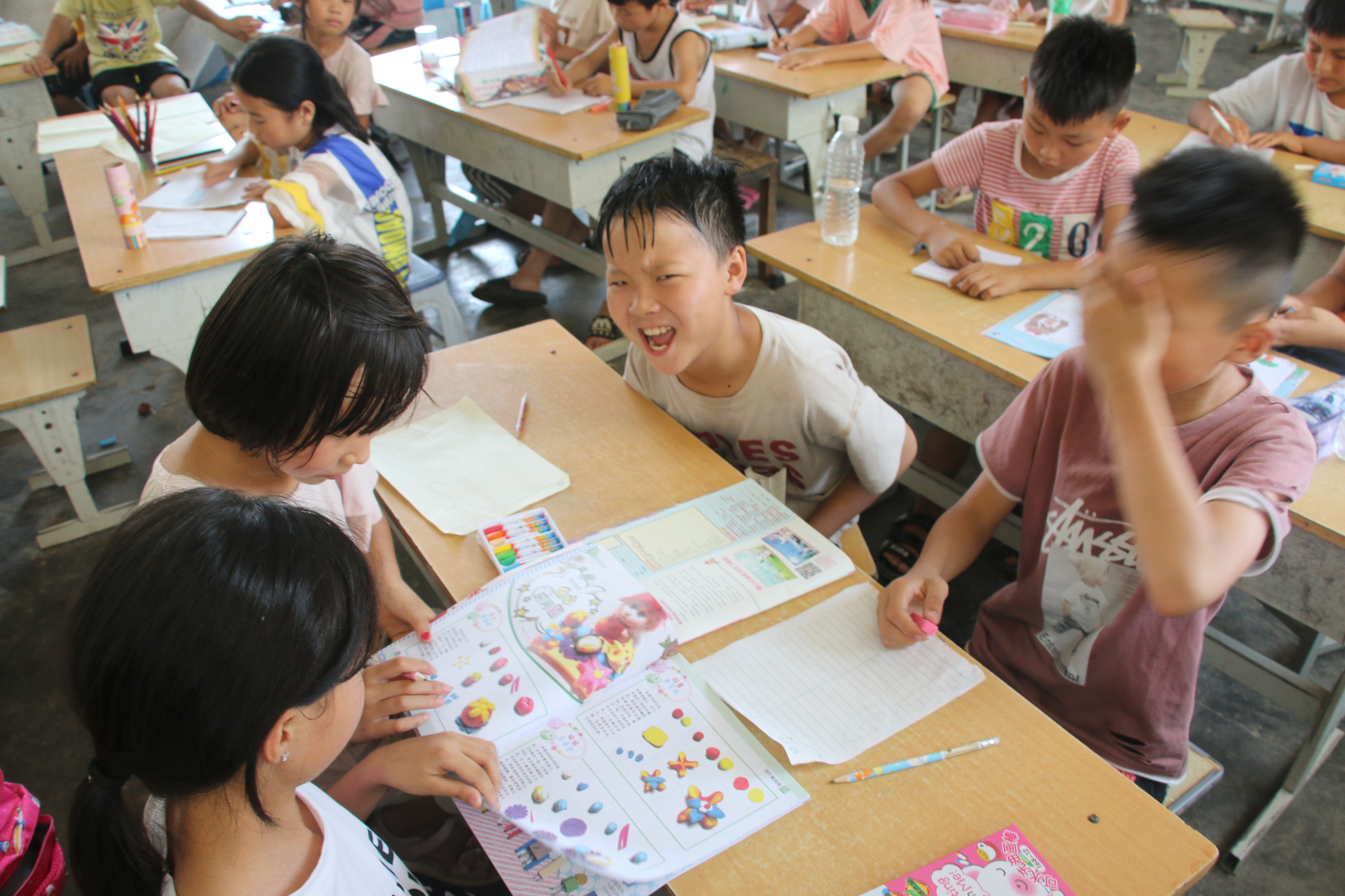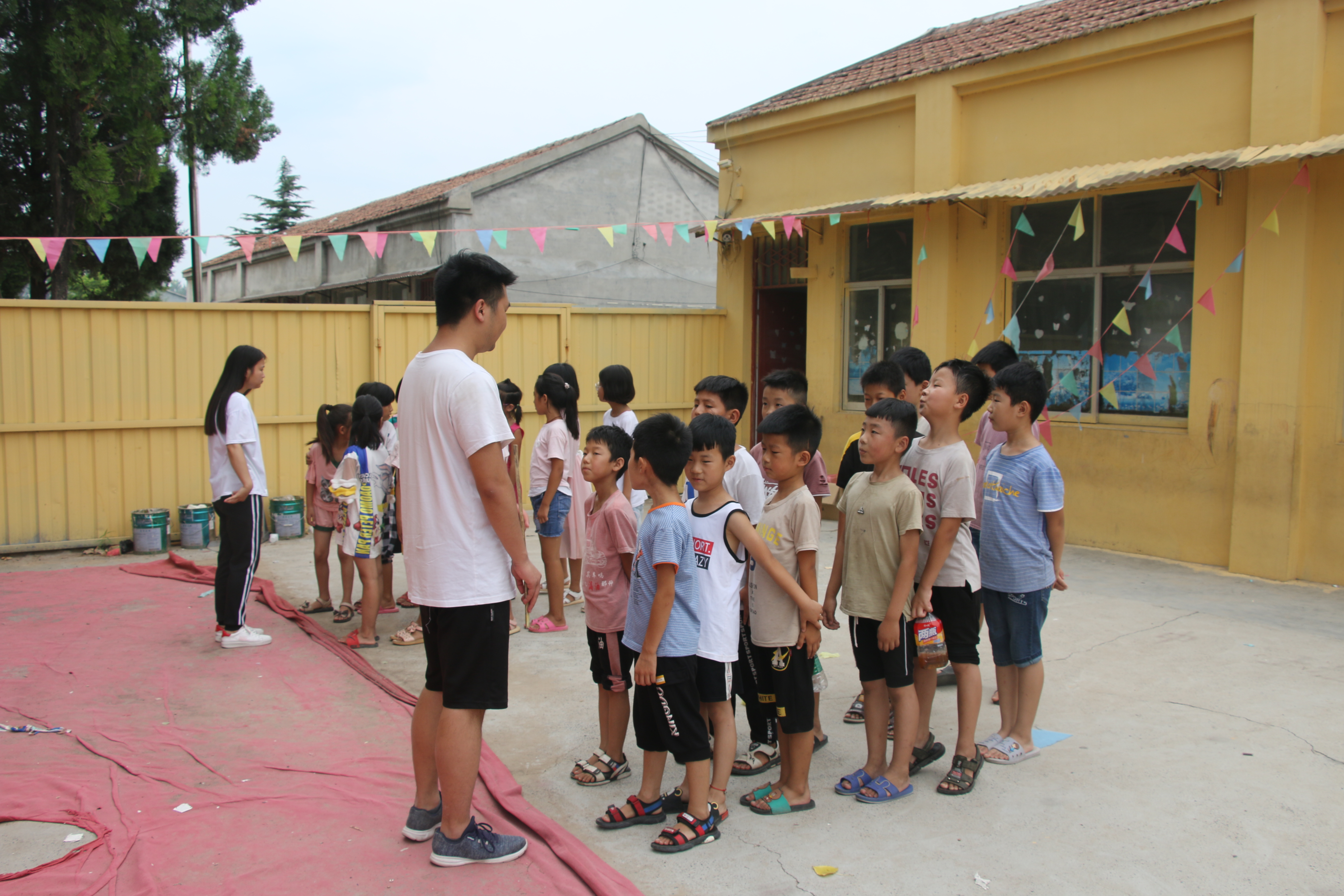 义务支教的第一天,服务团的同学们就与孩子们结下了深厚的情谊,为接下来的教育关爱留守儿童服务奠定了基础。看到孩子们一张张快乐、幸福的笑脸,再累、再辛苦大家都是高兴的,服务团的同学们纷纷表示:一定要继续发扬"奉献、友爱、互助、进步"的志愿服务精神,关爱留守儿童,给与他们更多的亲情陪护,为孩子们营造一个轻松欢乐的暑期生活!