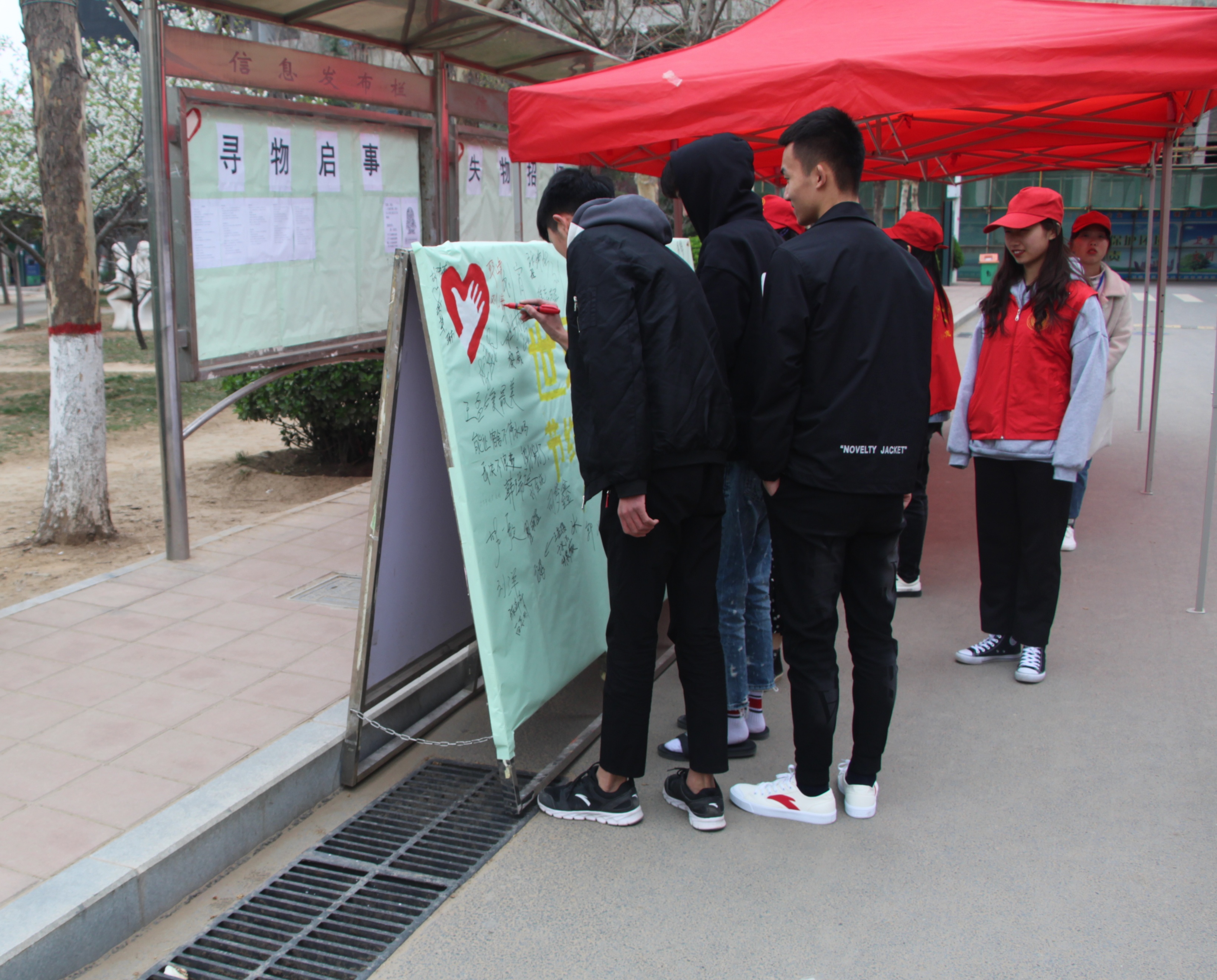 明确活动任务后,志愿者们开始工作。先在校园路灯上、水龙头上、草坪上进行贴“水乃生命源泉、保护花草树木、你给我一分安静,我还你一片光明”等标语。这么多鲜明的标语,一下就吸引了很多刚下课同学的注意。同学们纷纷上前围观。为了让同学们更好的爱护水资源,志愿者们制作了一个宣传展板,请同学们写下自己对爱护生命源泉的承诺并签上自己的名字。这一举动让很多同学产生了共鸣,参加签字的同学也是数不胜数。志愿者们一一对前来的同学们介绍世界水日的来源和节约用水的重要性。有不少同学深刻了解到了节约用水的重要性后,都表示要好好爱护水资源。活动一直持续到晚上六点,前来签字的同学们络绎不绝。宣传板上不仅仅是同学们的承诺,也是志愿者们和同学们对节约用水这种行为的见证。