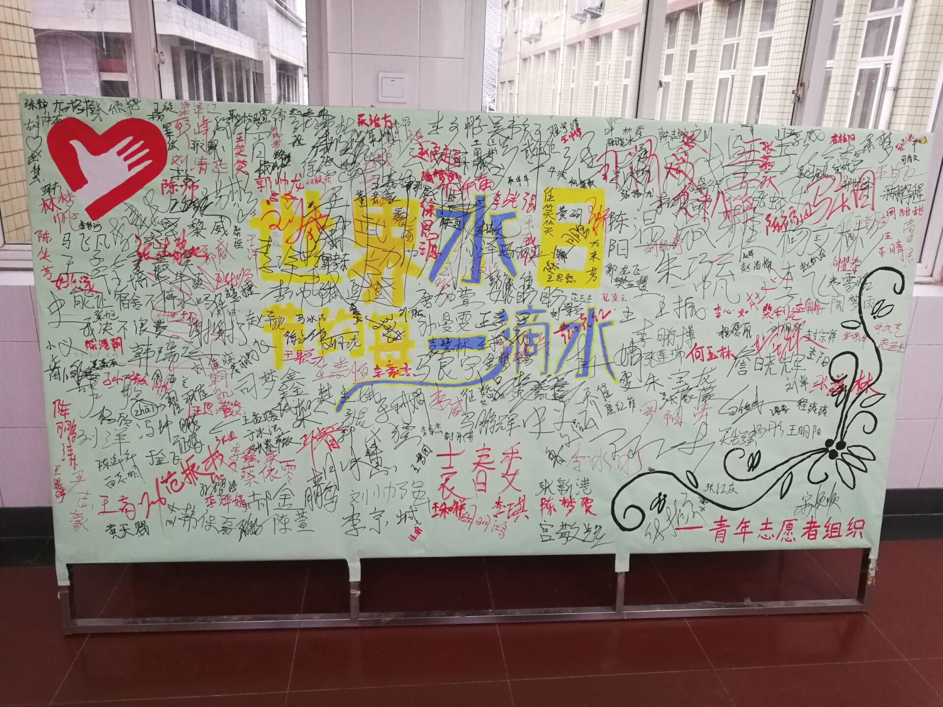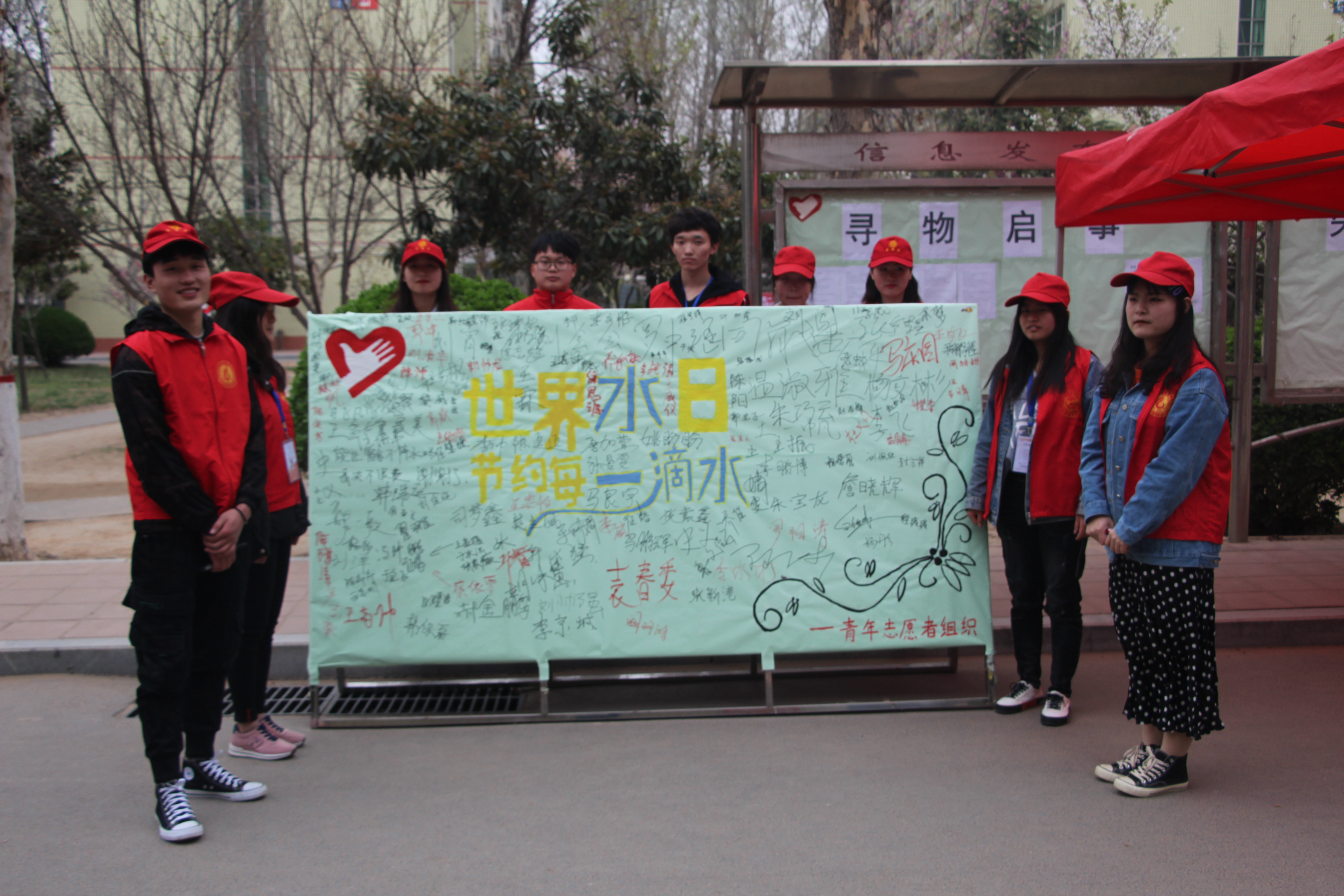在世界水日到来之际,为了唤起公众的节水意识,加强水资源保护,倡导节约观念,建设文明学校,我院青年志愿者组织于2019年3月21日在西餐厅门口举办了以“节约用水,珍惜生存环境”为主题世界水日活动。