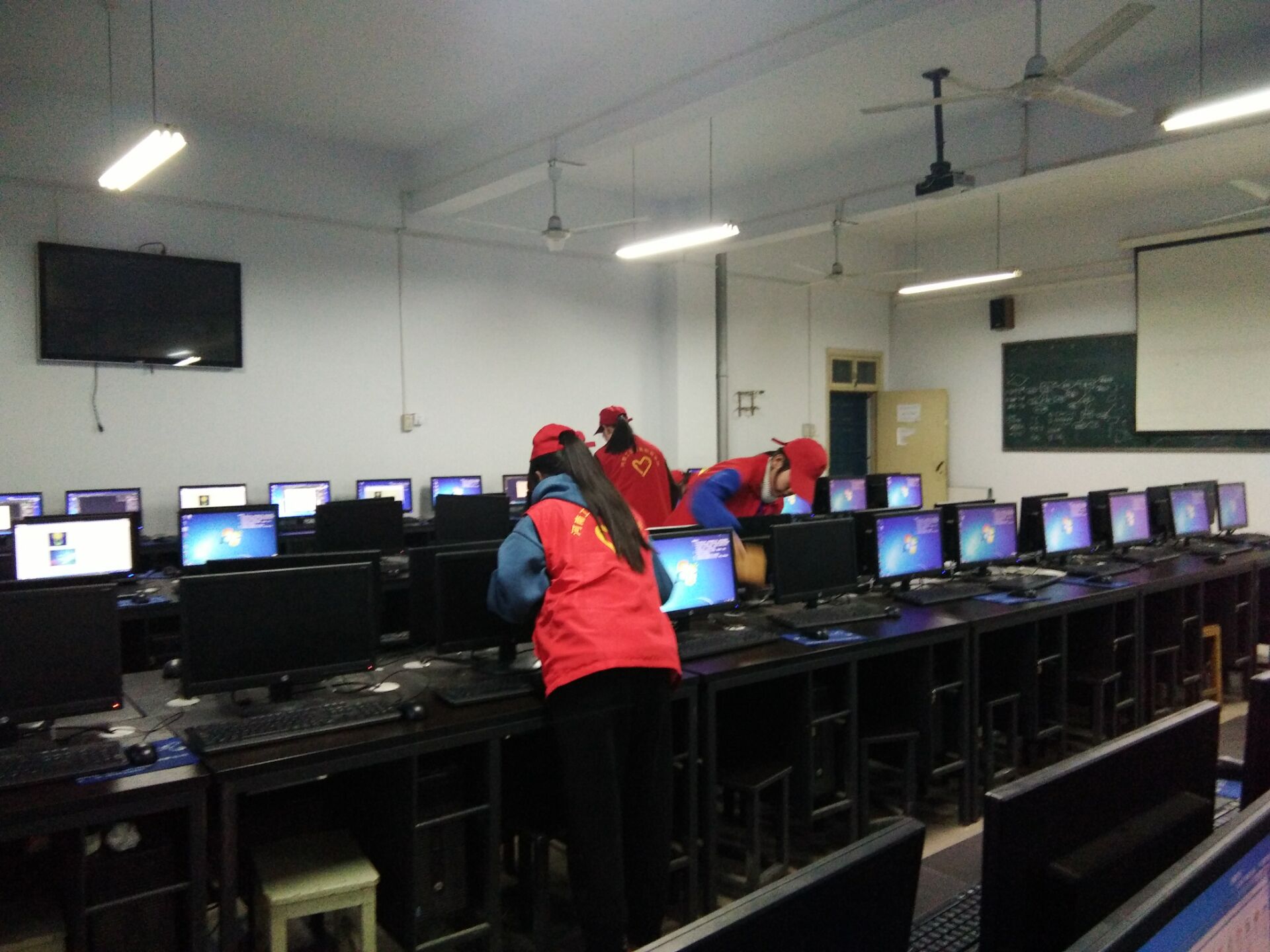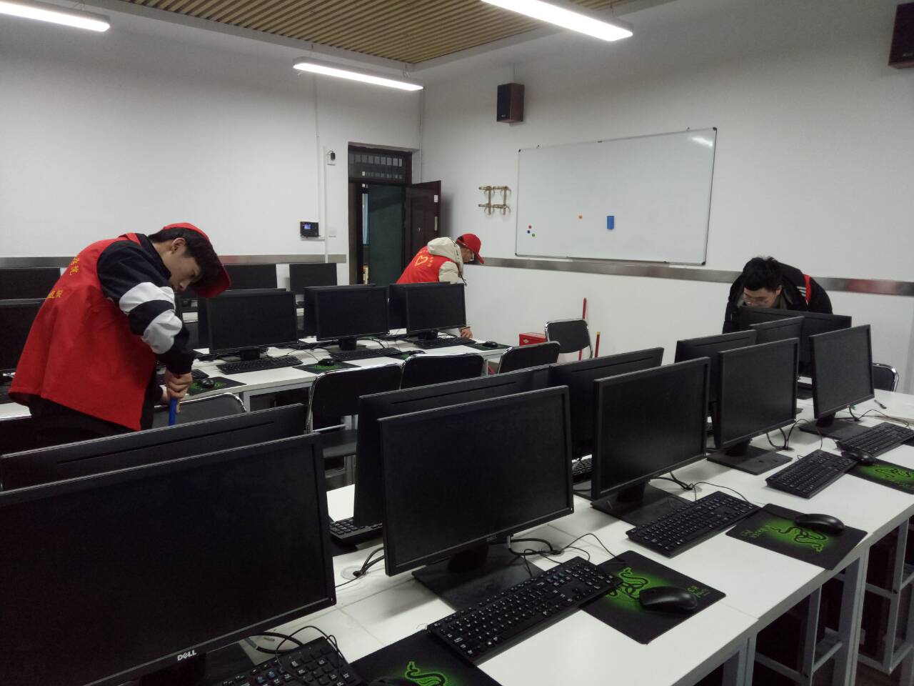 为了让工贸校园更加整洁,也让同学们有个干净良好的学习环境,信工系青年志愿者在3月5日下午18:00开展了机房大扫除活动。志愿者们各自不停的忙碌着。活动现场有的擦桌子,有的拖地,有的擦拭电脑键盘和鼠标,有的帮忙整理资料,有的清理设备上的灰尘等等。
