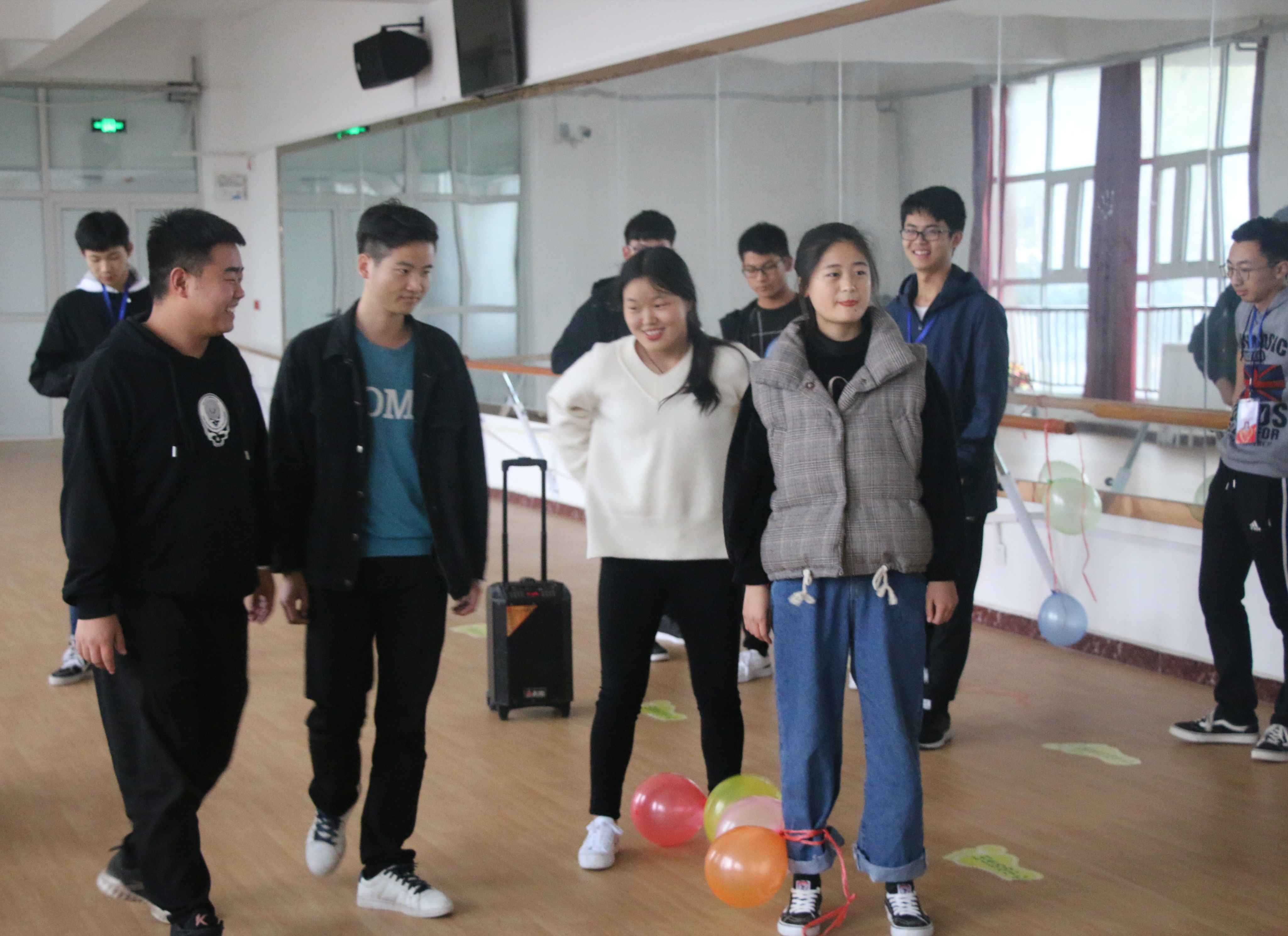 本次素质拓展以小组为单位开展活动,共设置了“气球大作战”、“万众一心”、“惟妙惟肖”、“同舟共济”、“乒乓传递赛”和“十人九足”等活动。活动的“惩罚”也是十分的有创意,比如做搞笑的动作、做俯卧撑压气球等。由于惩罚措施比较有难度,队员们都密切配合,动作机敏,生怕落后。活动的过程也是充满了欢声笑语,同学们异常兴奋,在每个游戏中都用尽全力。