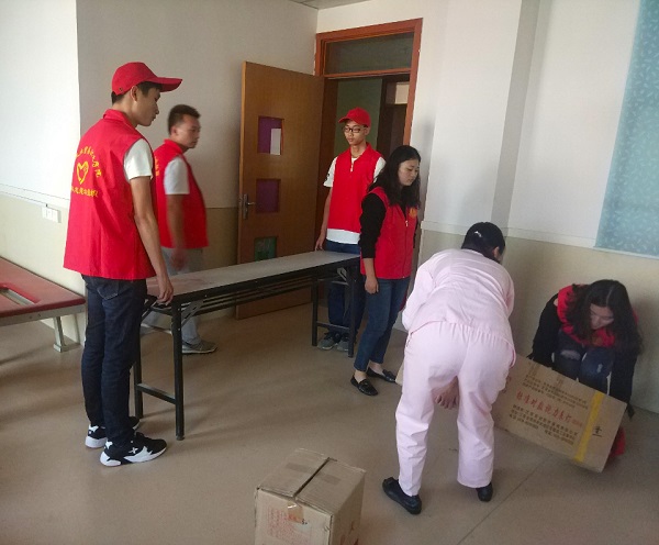 下午一点,志愿者们早早地在我院红旗广场集合完毕,坐上我院的校车去郑州市儿童福利院。到达福利院后,在福利院的一位老师的带领下,志愿者们逐渐了解了福利院中每一片区域的划分情况。在老师的带领下,志愿者们看到了孩子们平时活动的场所和上课的教室。紧接着老师开始分配任务,有的去图书室里整理书籍、有的去康复室里照看孩子、有的去帮忙抬东西。在康复室照看孩子的志愿者们给孩子们唱歌、跳舞、讲故事、做游戏,用各种方法逗她们开心。志愿者们纷纷表示这些孩子都特别可爱,简直就是小天使。在活动期间,福利院的老师告诉志愿者们有些孩子下个星期会被国外的养父母收养。在这里虔诚的希望福利院的每一个孩子都会有一个好的归宿。