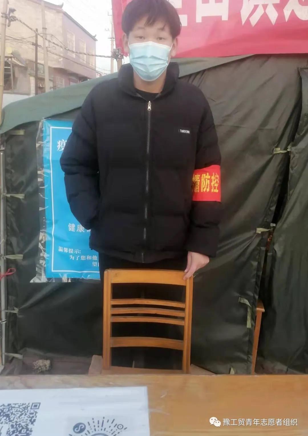 20计网102李志强同学在自己的家乡许昌市禹州县参与了疫情防控工作,他说,当他看见疫情严重的报道,他毫不犹豫的报名参加了家乡的防疫志愿者工作。为了每个人的安全。还积极的卡点值班为封村做出小小的贡献,作为一名大学生贡献自己小小的力量,相信国家一定能打赢这场战役!