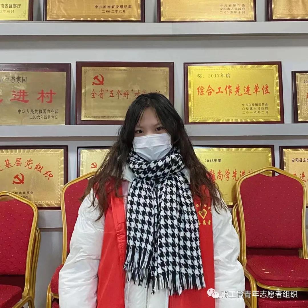 20数媒104赵璐瑶同学家在安阳,当知道疫情爆发后,她毫不犹豫向当地社区报名加入疫情防控的工作中,穿上志愿者工作服,协助医务人员进行核酸采集工作、为社区居民进行核酸前登记信息。她说,虽然非常累,但当志愿者可以帮助到更多需要帮助的人,能为疫情防控贡献一份力量,感觉很值得。