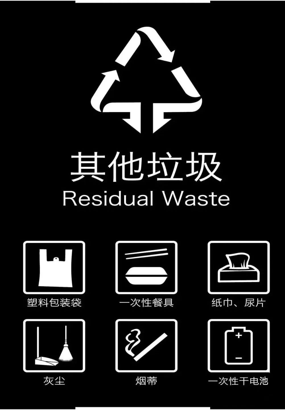 其他垃圾指除可回收物、有害垃圾、餐厨垃圾外的其他生活垃圾,即现环卫体系主要收集和处理的垃圾。主要包括:受污染与无法再生的纸张、受污染或其他不可回收的玻璃、塑料袋与其他受污染的塑料制品、废旧衣物与其他纺织品等。