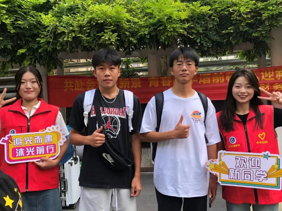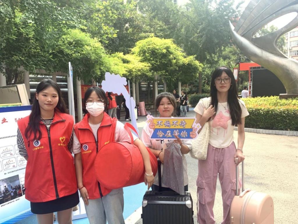 志愿者们带领新生们参观校园,努力帮助新生搬运行李,驱散他们初来乍到的陌生和无措,有老师和同学陪伴,一同见证最美工贸。