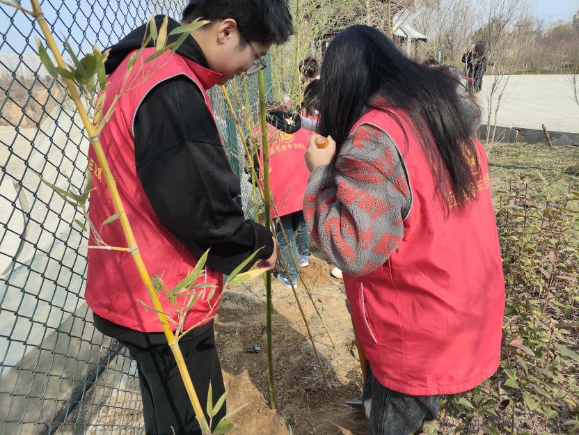 阳春三月,草长莺飞,又是一年春草绿,植树造林正当时。今年“3.12”植树节,为了全面贯彻落实党的二十大精神,践行习近平生态文明思想,牢固树立绿水青山就是金山银山的发展理念,为积极响应校党委的号召,2024年3月12日下午,校团委组织20余名青年志愿者开展2024“学雷锋 我行动”植树节种植竹子活动。