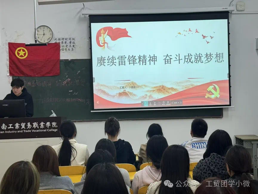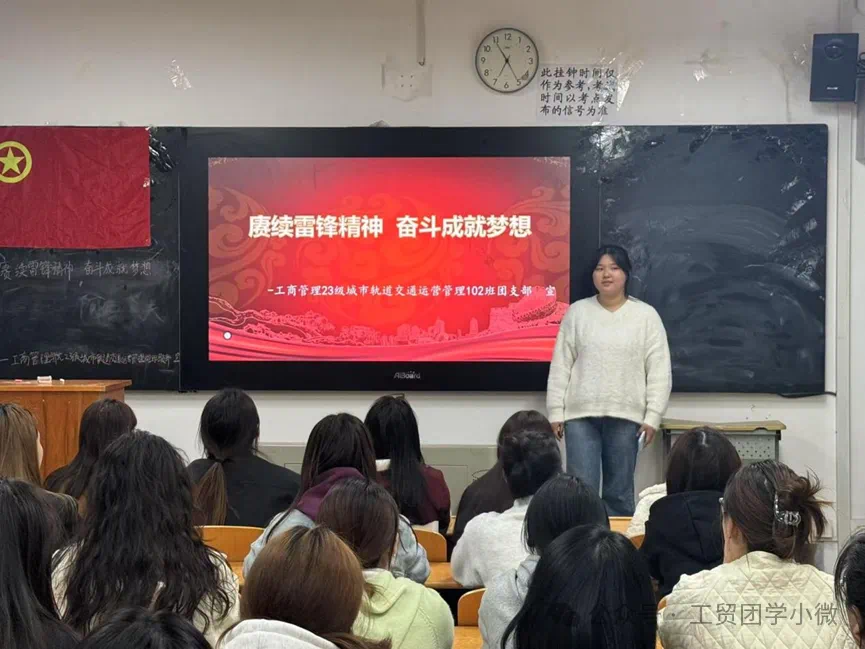 团支书通过讲述雷锋的生平事迹,让同学们深入了解雷锋精神的内涵。向大家详细、生动地讲述传承雷锋精神的意义,并讲述雷锋故事、分享雷锋日记,深入了解雷锋平凡而伟大的一生。
