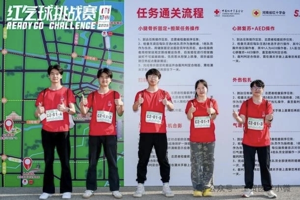 比赛中,我校学子秉承“人民至上,生命至上”的理念,以“分秒必争”的紧迫感,将每一个应急救护任务视为守护生命的神圣使命。他们穿梭于河南艺术中心文化广场、龙湖金融岛、白庙地铁站等城市地标之间,在3个小时内依次完成6项应急救护任务同时,组建“急救知识翻译官”,向围观群众科普AED使用要点。正如带队教师所言:“这不仅是竞技场,更是青年将急救技能转化为社会价值的实践课堂!”【战略链接】“青”力挺膺向未来