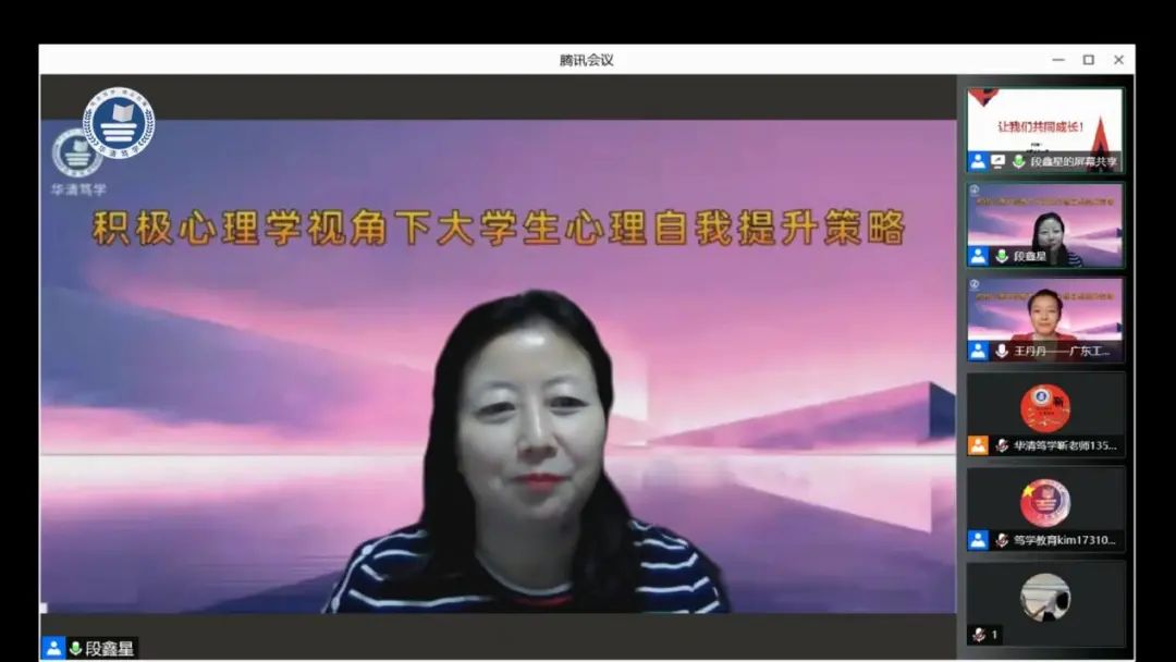 为切实加强和改进新时代高校师生心理健康教育工作,提升高校心理育人质量,省委高校工委、省教育厅决定于10月25日至29日开展以“护航青春成长,礼赞建党百年”为主题的心理健康教育宣传周活动。校党委委员、副校长刘卫红亲自安排部署,10月22日晚,由全国知名心理学者段鑫星教授所作的《积极心理学视角下大学生心理自我提升策略》公开课拉开了我校此次心理健康宣传周活动的序幕。学校全体辅导员,20、21级学生与全国近7万名师生共同参加了此次线上培训。