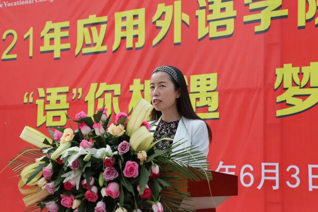 应用外语学院院长范勇慧在会上致辞,她首先对莅临本次双选会的校领导和企业代表表示欢迎和感谢。她强调:“就业是民生之本,安国之策,和谐之基。高校毕业生就业,一头连着国家社会,一头连着万千家庭,事关重大。外语学院在学校党委的正确领导和部署下,高度重视毕业生就业工作,今后将继续加强学院和高质量优秀企业的合作”。随后,她简要介绍了应用外语学院的基本情况,并对毕业生做了殷殷嘱托。