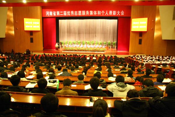 12月4日,由省志愿服务工作领导小组举办的河南省第二届优秀志愿服务集体和个人表彰大会在郑州隆重举行。省委副书记、组织部部长邓凯出席大会并作重要讲话,省人大常委会副主任蒋笃运、省政协副主席邓永俭出席大会。团省委书记侯红同志主持会议。省文化强省建设和文化体制改革工作领导小组副组长卢大伟、省委副秘书长安伟,省委宣传部副部长权红军、省委宣传部副部长李宏伟、省公安厅常务副厅长李建中、团河南省委副书记贾宏宇、省慈善总会常务副会长杨德恭、省发展改革委副主任陈永石、省报业集团副总编辑王俊本、 省司法厅副厅长周济生、省农业厅副厅长薛豫宛、省旅游局副局长倪豫州、省广电局副局长宋凤仙、省卫生厅纪检组长魏金琳、省科技厅纪检组长童孟进、省妇联副主席王秀芝、省人力资源和社会保障厅副巡视员夏继水、省残联副理事长黄建新、省科协副主席冯琦、省总工会直属单位党委专职副书记、纪委书记王海庆、 省红十字会专职副会长何传军出席大会。受表彰的志愿服务集体和个人代表,社会各界的志愿者代表,共计2000多人参加了大会。
